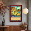 This piece works in game rooms where the warm flame palette contrasts with darker walls. Additionally, it pairs well with other elemental character cards from the same set.