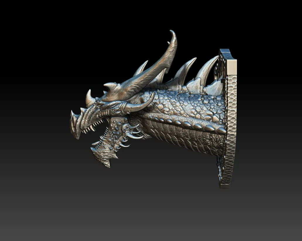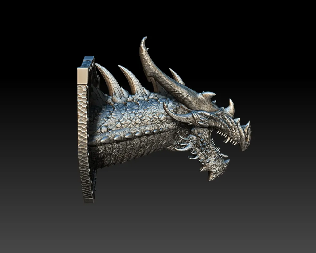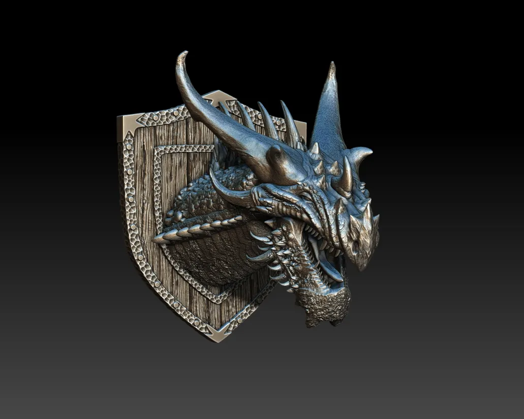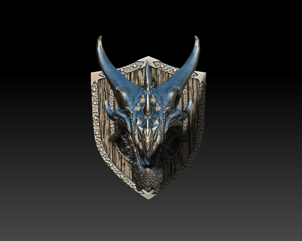 02 Tyrathis the Orange Bust – Monstrous Menagerie erupts from the shield in a snarl, jaws parted and horns sweeping back with predatory grace. Because the sculpt captures layered scales and serrated spines, every angle feels alive. The ridged brow and flared cheek plates create depth, while the open maw reveals rows of lethal teeth. As a result, this trophy commands attention the moment it meets the wall.