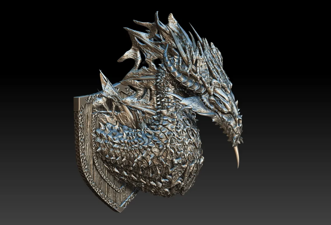 Sculpted shield-style trophy backing formed entirely in 3D-printed resin