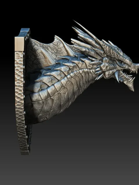 Because the sculpt combines fractured scale geometry with flowing neck curvature, it creates the illusion of movement held in tension.