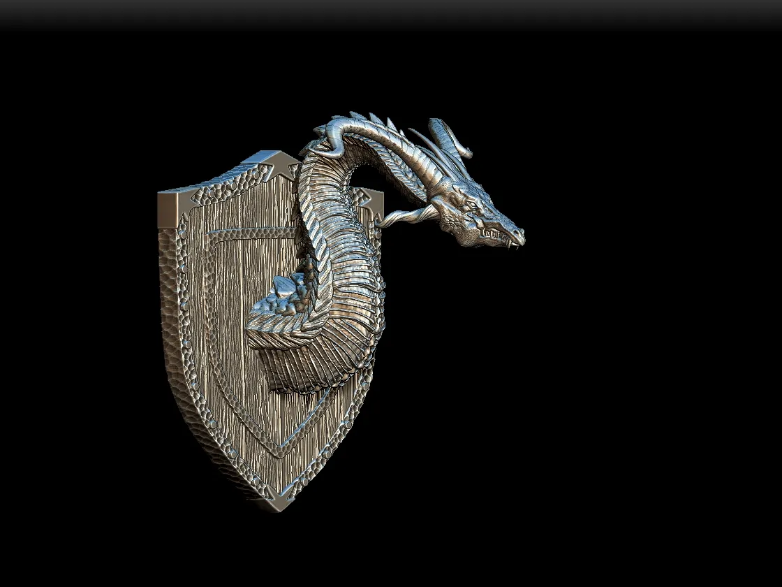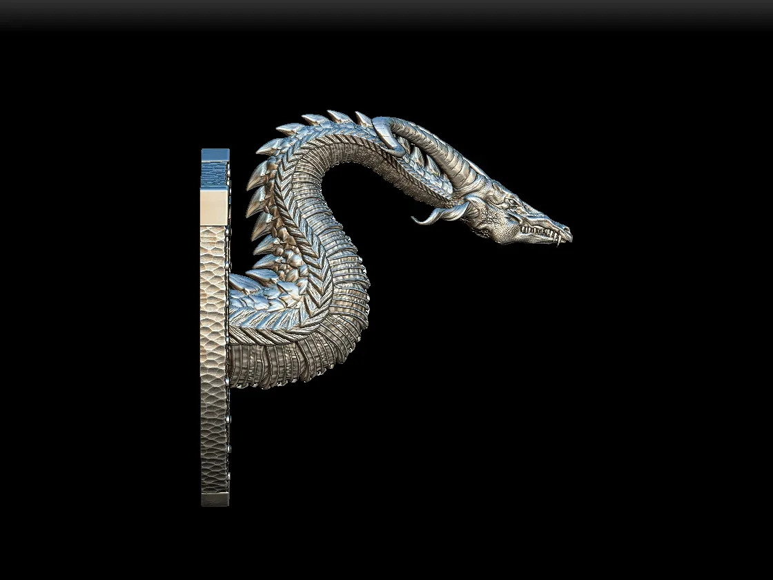 Segmented belly plates run in disciplined rows along the underside of the neck. Fine ridges trace across the crown and spine, guiding the eye from horn tip to jawline. In addition, the recessed facial lines introduce natural shadow pockets that deepen expression. Therefore, painters can exploit strong dark gradients and restrained highlights to preserve the sculpt’s shadow-driven character.