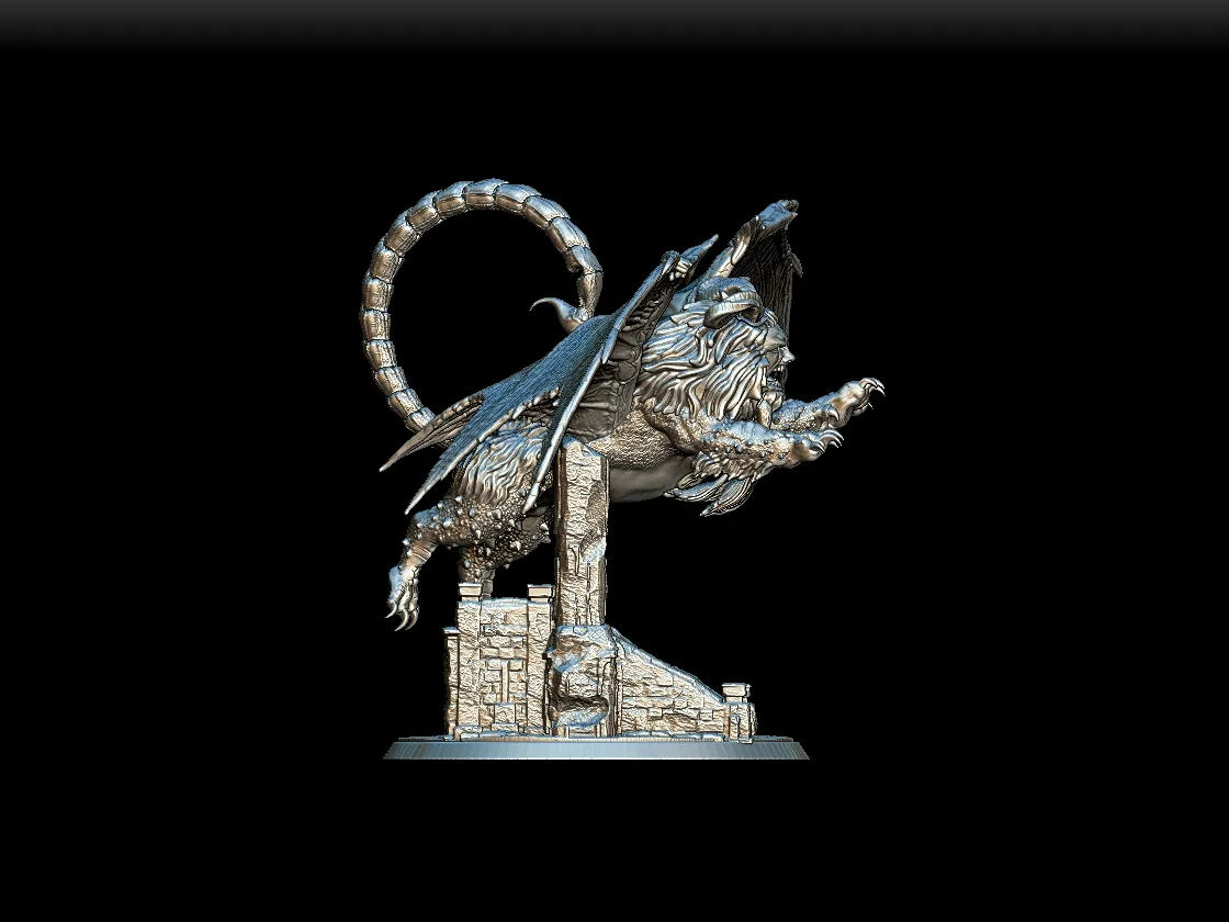 Because of the varied textures across fur, membrane, and scale, this model rewards layered shading and careful contrast work. Furthermore, the elevated tail invites bold color accents along each barb. In addition, the stepped base supports weathered stone effects or desert-toned finishes. Consequently, the Manticore becomes a dramatic focal point whether displayed in a cabinet or introduced into narrative tabletop scenes.