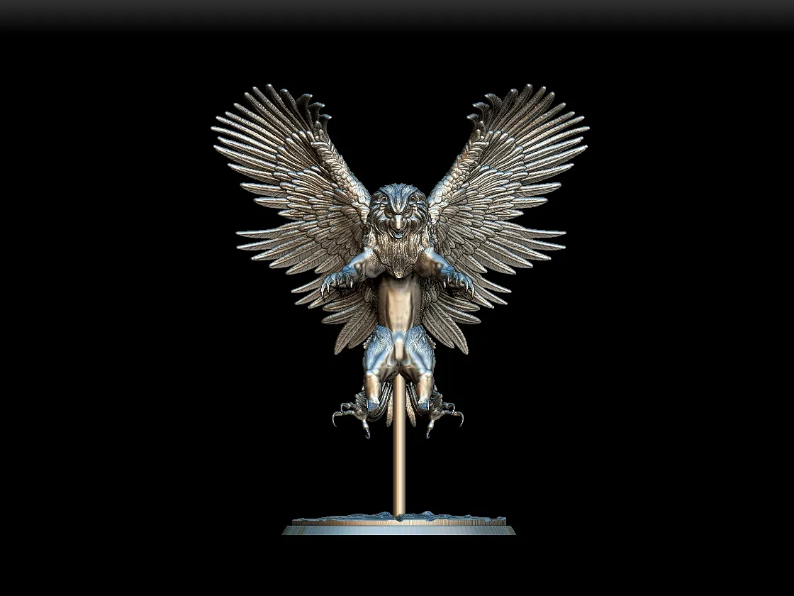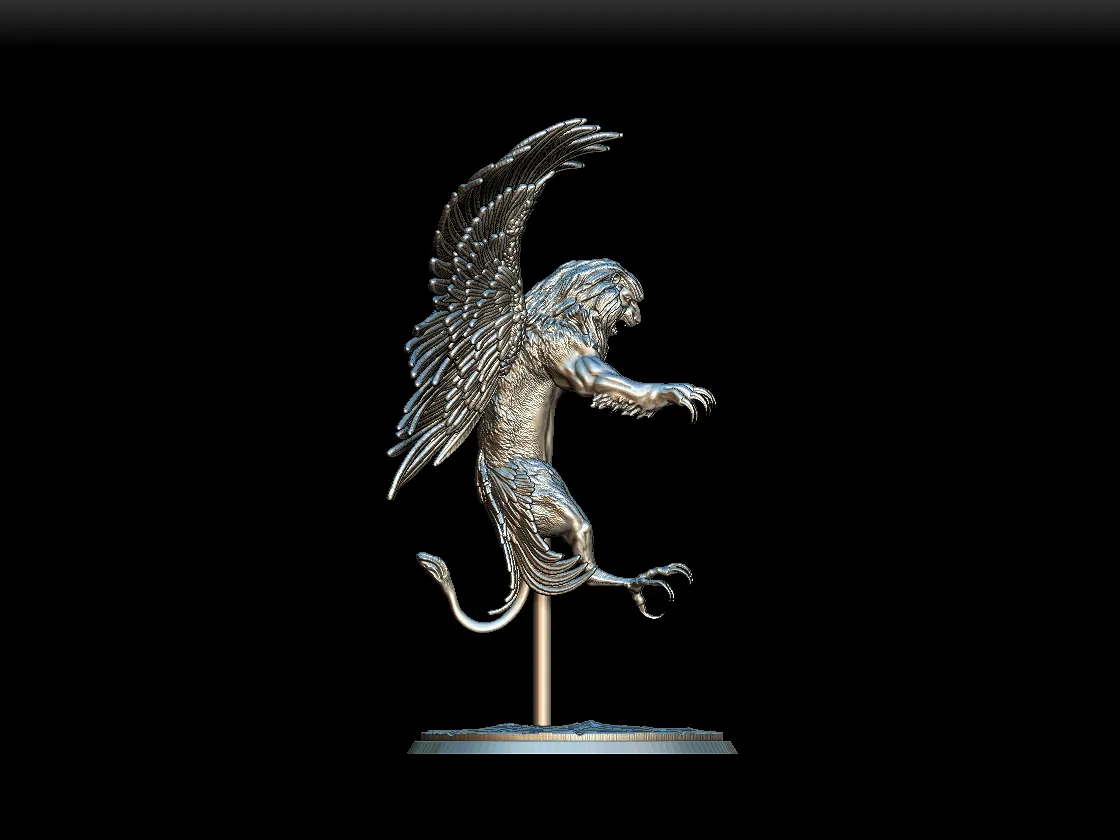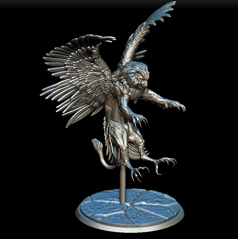 Because of the intricate feather layering, this model rewards subtle gradients and controlled dry brushing. Furthermore, the elevated support allows shadow work beneath the torso for added depth. In addition, contrasting tones between fur and plumage can emphasize its mythic character. Consequently, the Shedu becomes a striking focal piece whether showcased in a cabinet or integrated into narrative tabletop scenes.