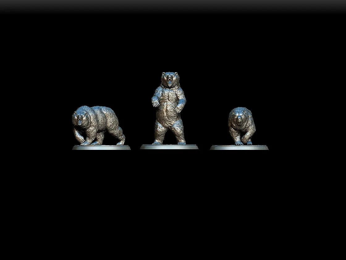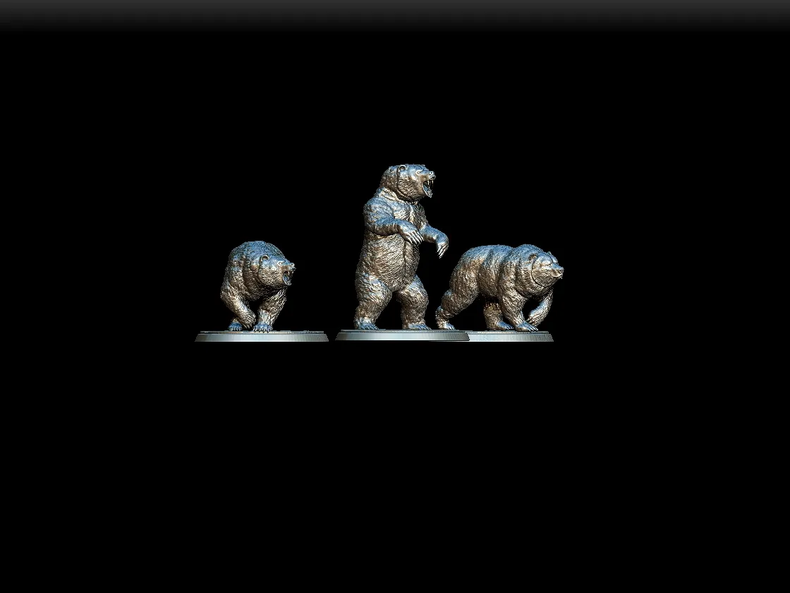 The Dire Bear 3 Pack presents three distinct poses, capturing stalking, rearing, and forward-driving motion in one cohesive set. Each bear displays dense fur texture, heavy shoulders, and powerful forelimbs ready to strike. Moreover, the varied stances create dynamic interaction across a shared battlefield scene. Watch the rotating product video to explore each pose and appreciate the sculpted detail from every angle.