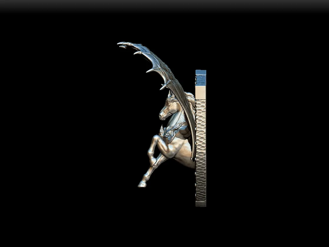 The Shadow Wing Pegasus surges forward in a moment of suspended ascent, its vast wings extended in dramatic tension. Muscular forelegs reach outward while the lowered head conveys fierce intent. Moreover, the sweeping membranes frame the composition with bold symmetry. Watch the rotating product video to appreciate the layered anatomy and powerful silhouette from every angle.