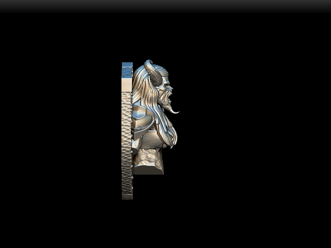 Mounted on an iron-banded wood shield, this bust presents the Pit Fiend Female as a gruesome hunting prize taken from hell’s armies. Collectors and painters can choose from three sizes: