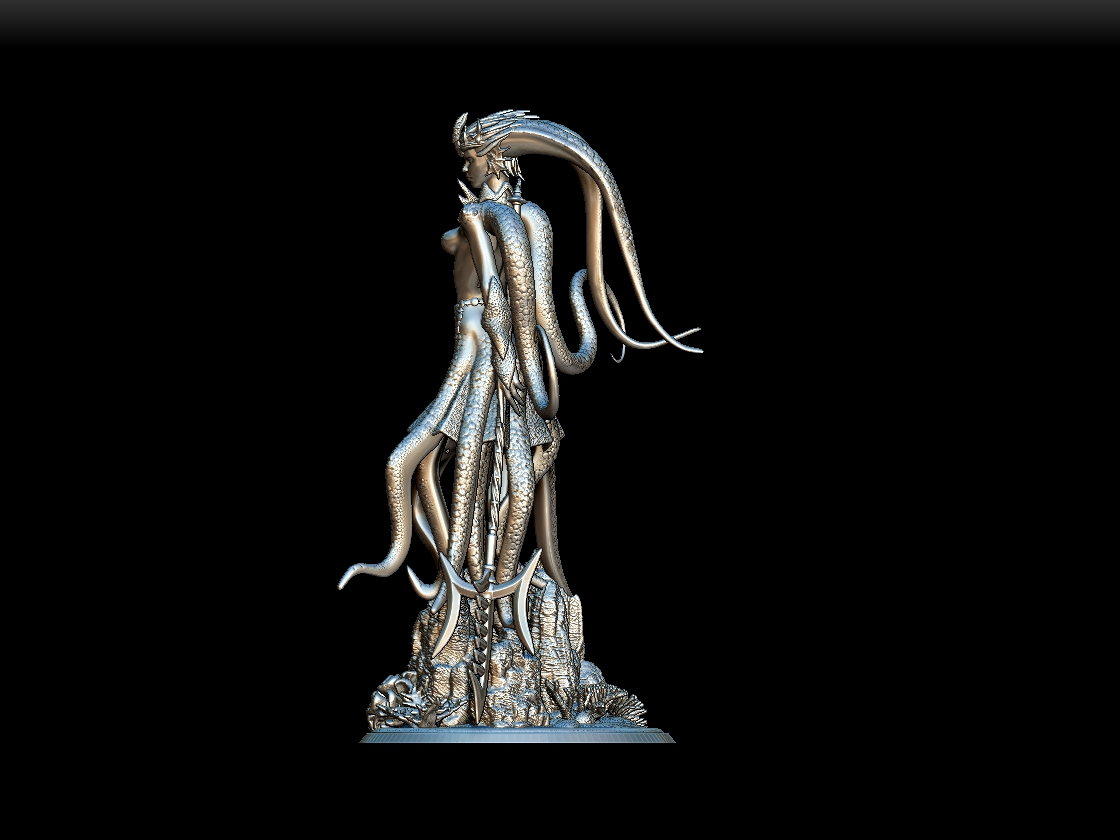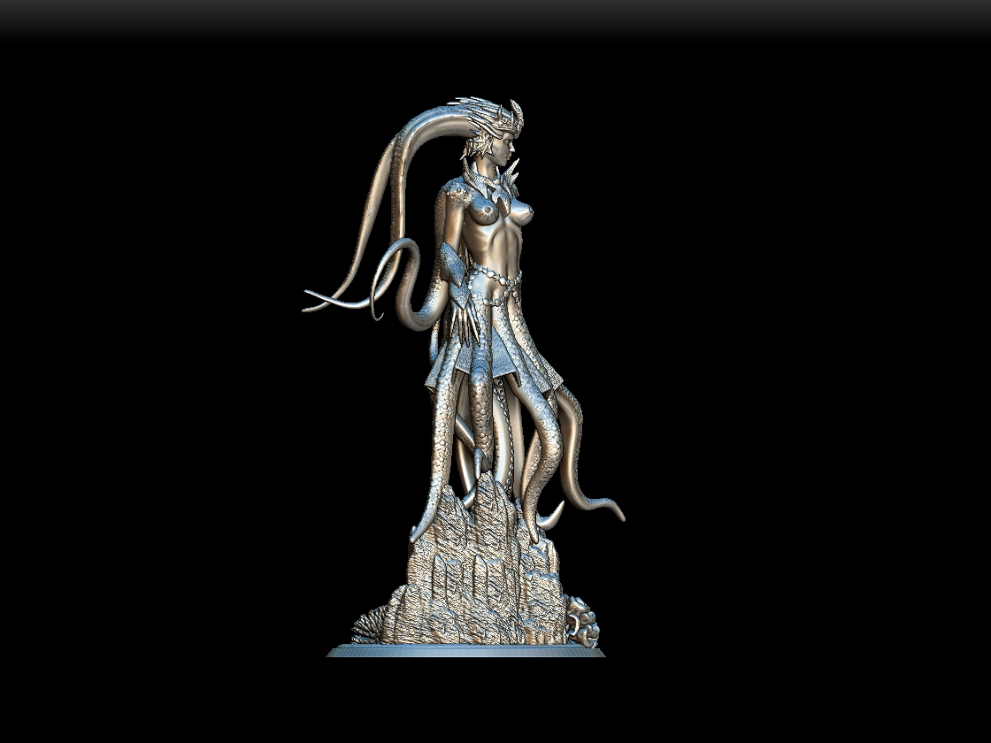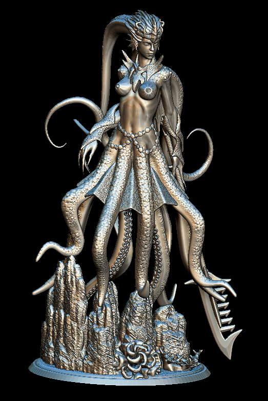 Full-body sculpt with twisting tentacles, ridged mantle, and aquatic anatomy.