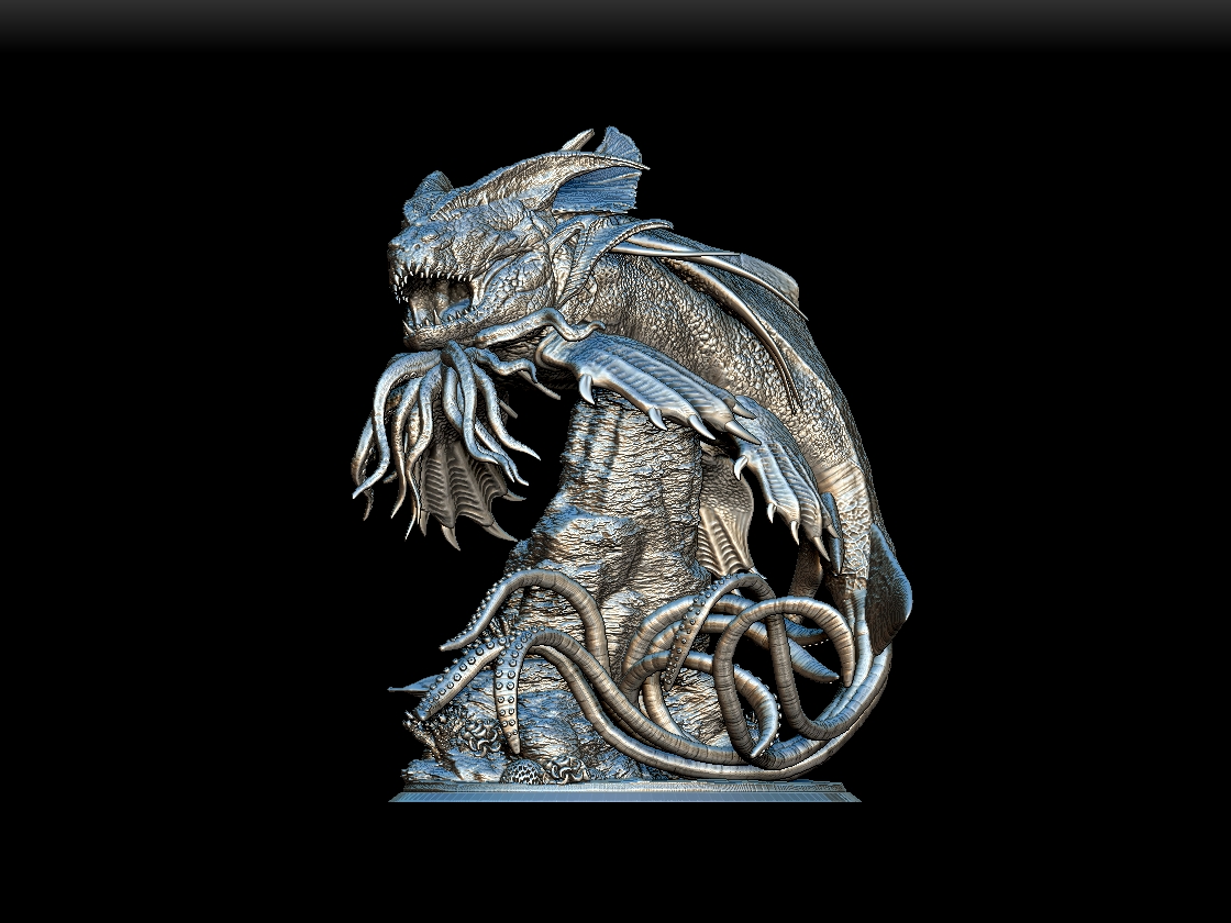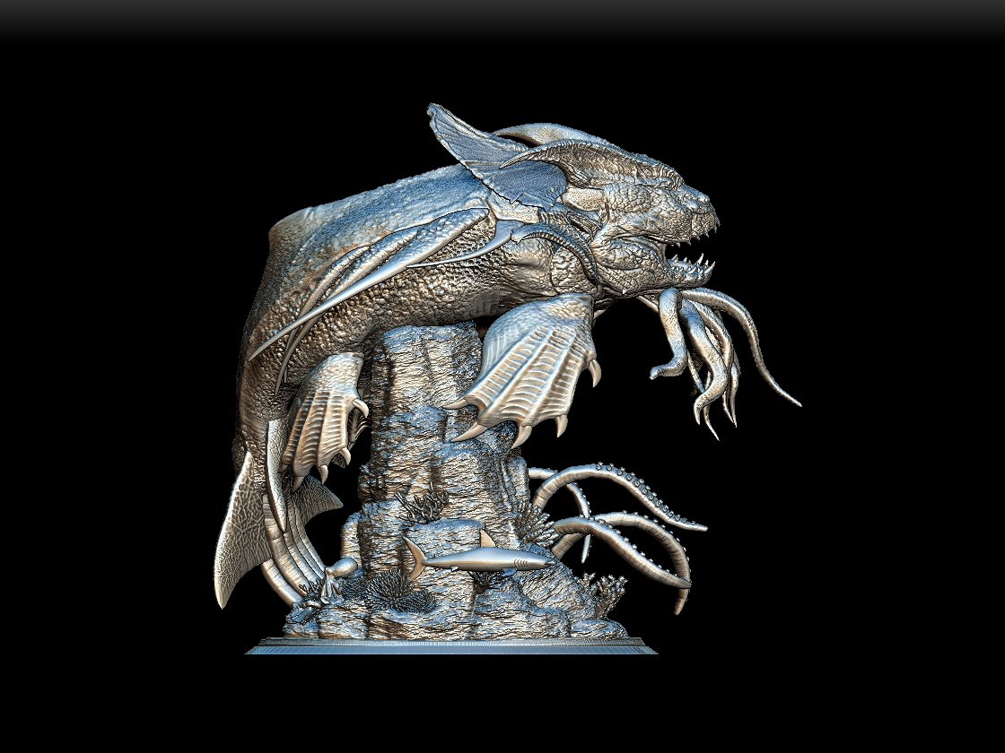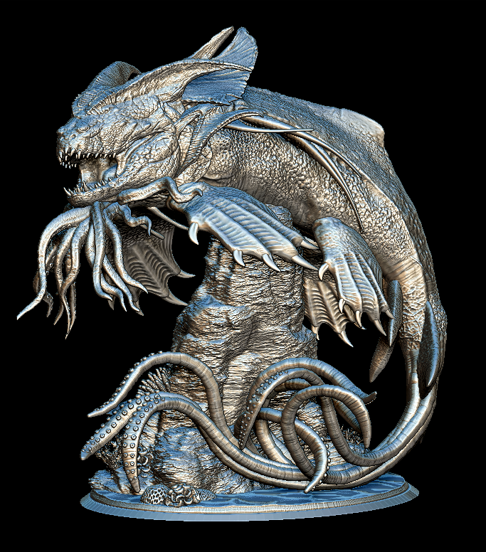 Mounted on a rocky ocean outcrop base with wave-like textures. (sea-monster miniature)