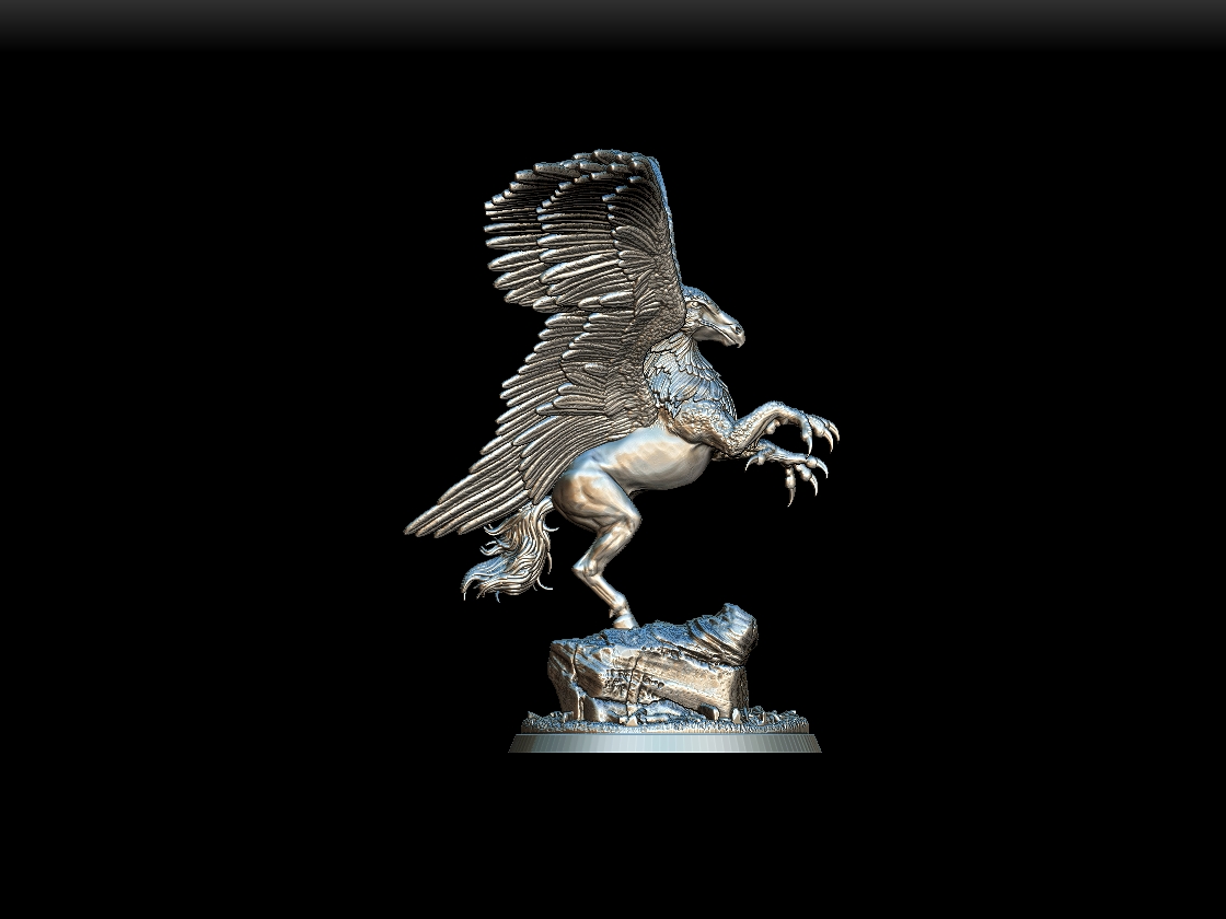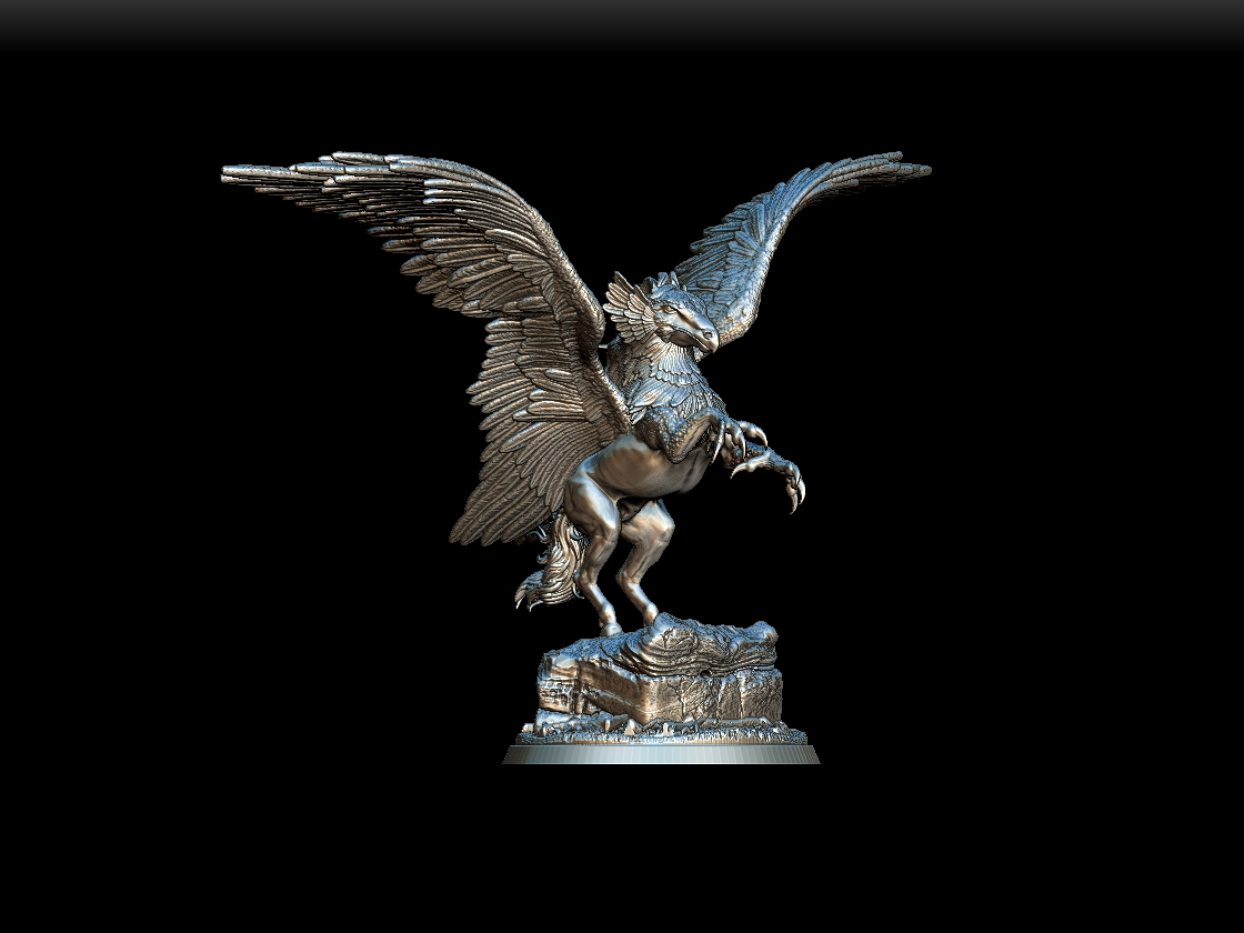 Full-body sculpt with wings extended, talons poised, and equine musculature.