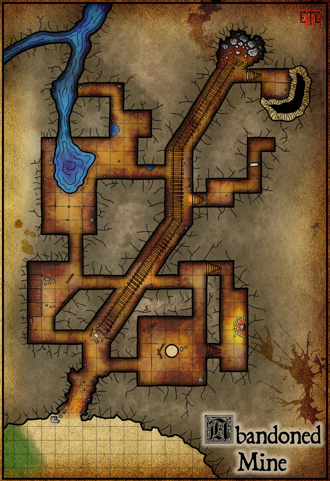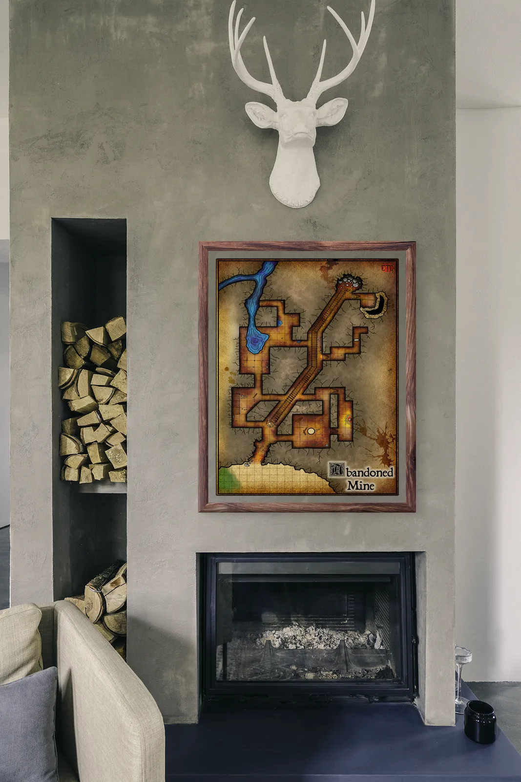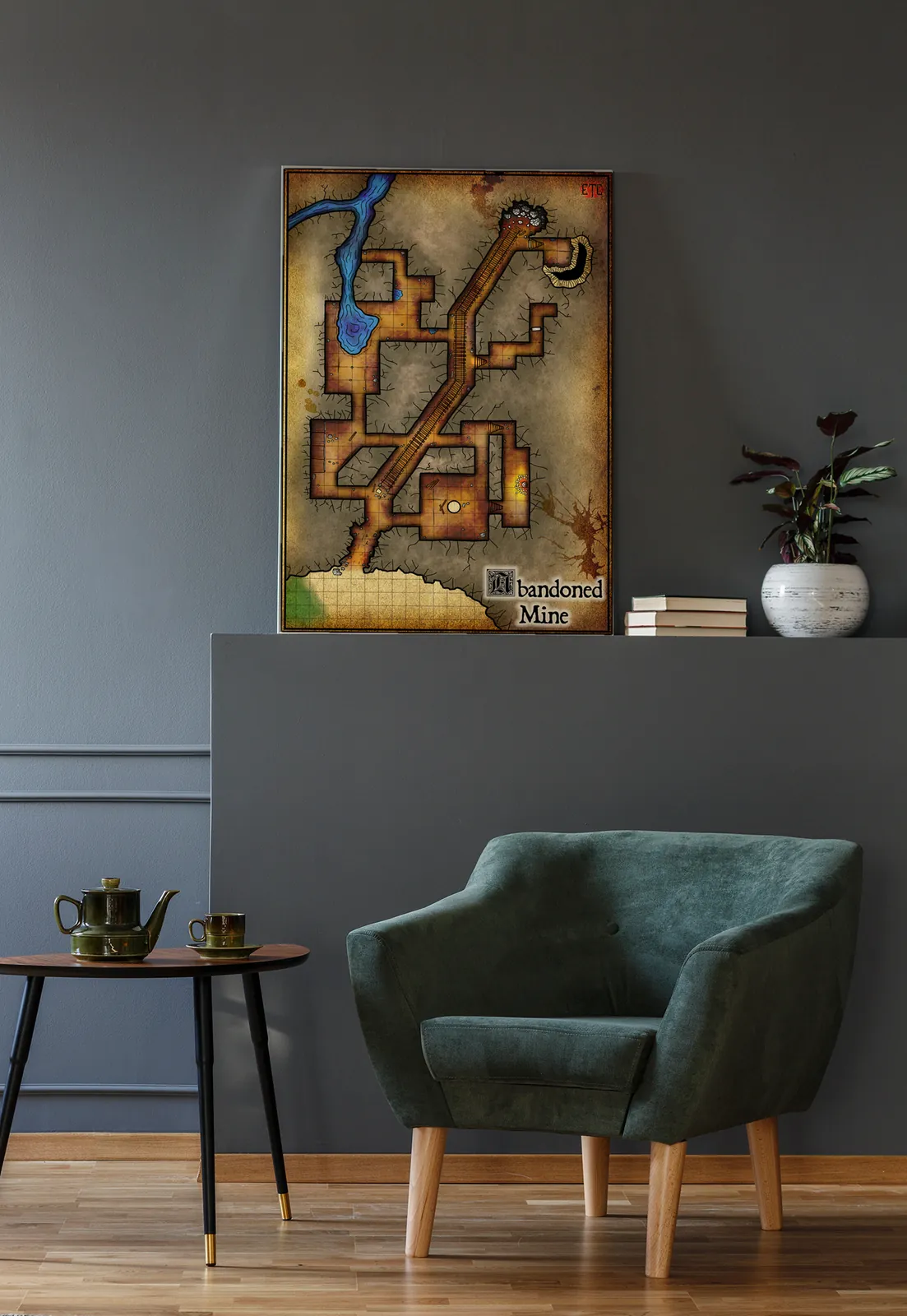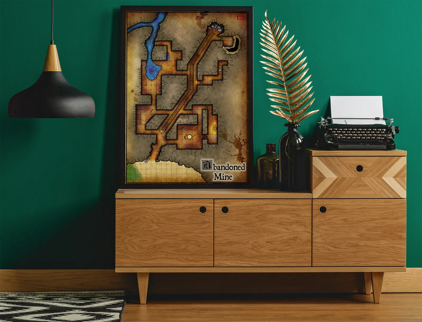 Abandoned Mine opens on a collapsed underground network where broken tunnels and forgotten chambers suggest lurking danger. This Abandoned Mine dungeon battle map canvas depicts those hazardous claustrophobic spaces in vivid detail. Moreover, scattered debris and uneven passages imply unstable ground and hidden threats. Consequently, the scene establishes tension through confined space and uncertain footing.