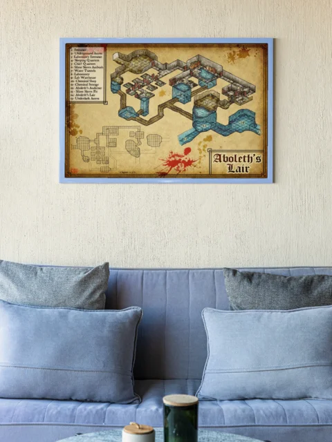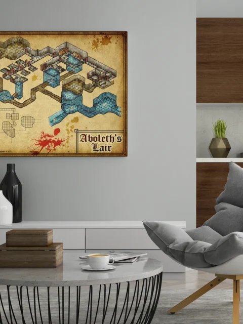 This map anchors your next underwater horror arc with room-by-room clarity. It speaks to dungeon masters who build encounters around specific terrain and tactical challenges. The aboleth lair fantasy battle map canvas print particularly rewards campaigns where water levels matter.