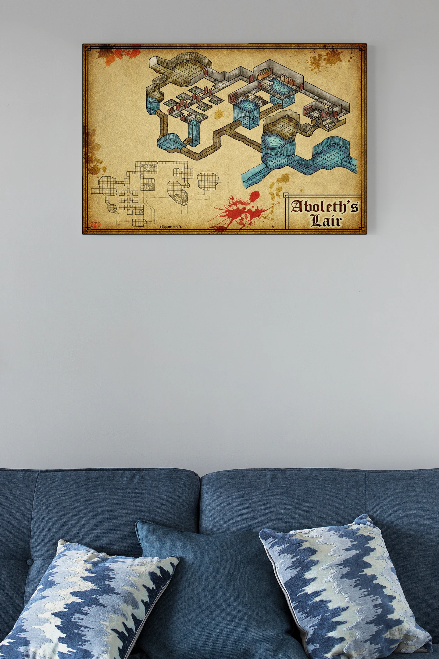 Dungeon masters who build campaigns around aberrations and deep water threats display this openly. The collector identity here values functional art that bridges session prep and wall space. This aboleth lair no labels fantasy battle map canvas print particularly serves DMs running underwater horror arcs.