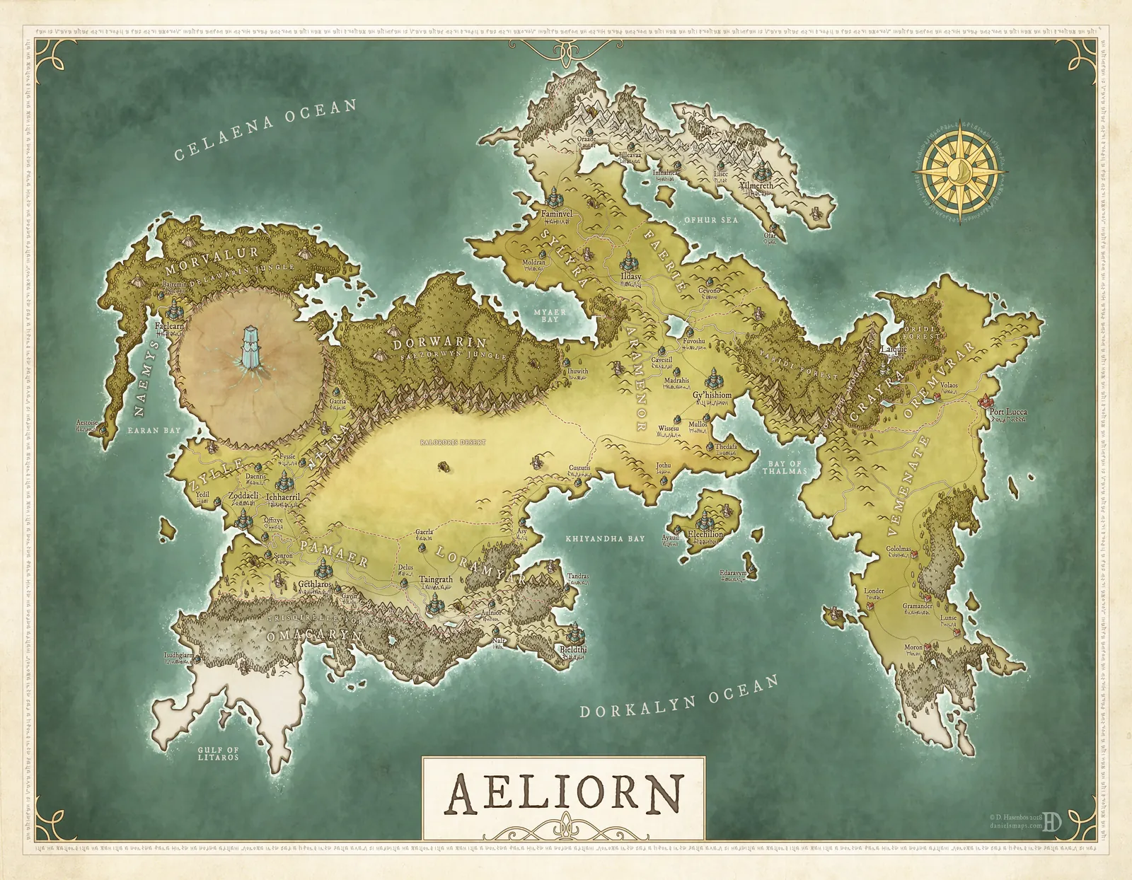 Fantasy world map illustrated by Daniels Maps