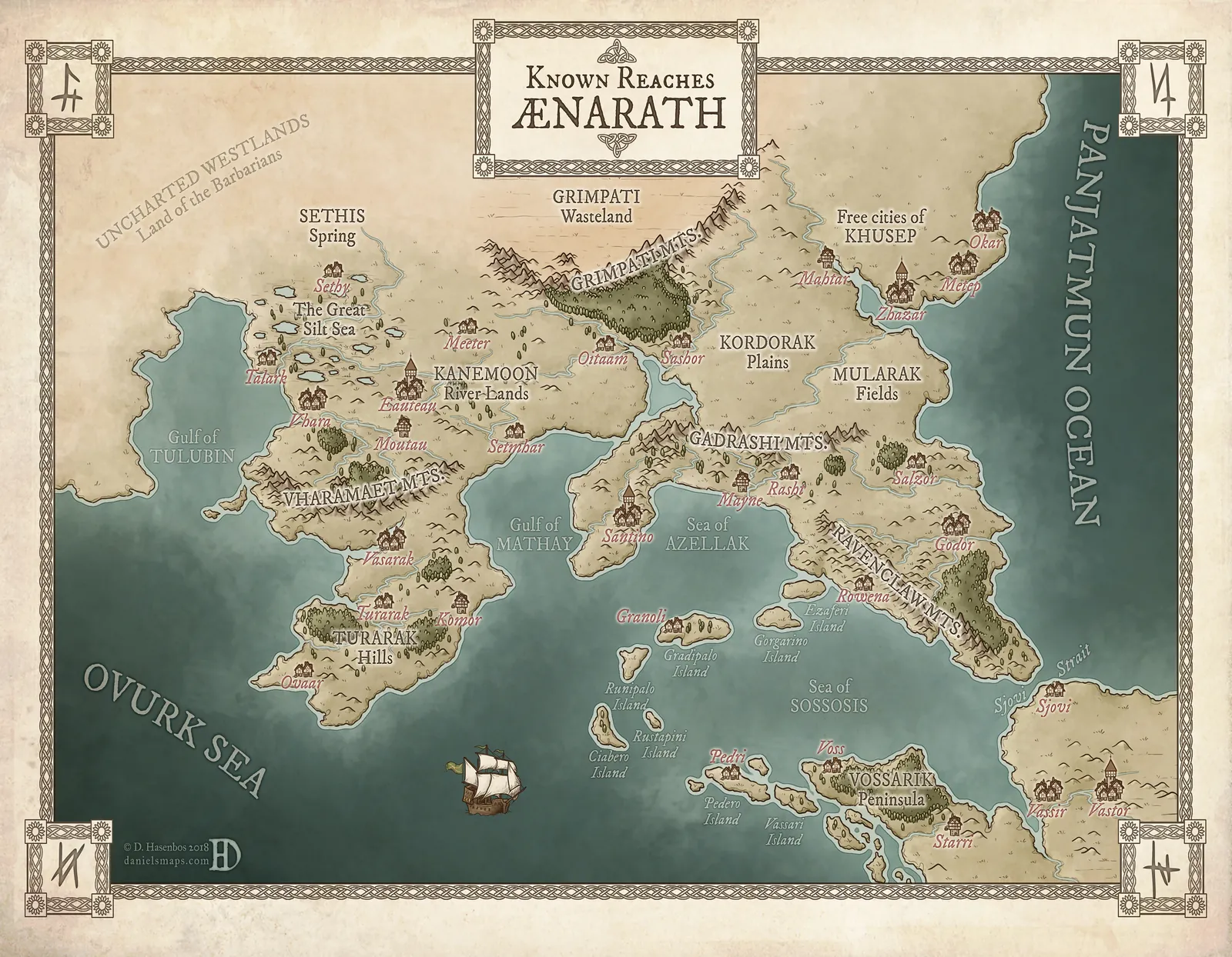 Moreover, Daniels Maps brings precision and balance to the Known Reaches of Aenarath. In particular, clean labeling, readable terrain features, and thoughtful spacing make the map easy to use at a glance. Consequently, it supports regional planning, trade routes, and political tension. In turn, it becomes a strong foundation for campaigns centered on exploration and diplomacy.