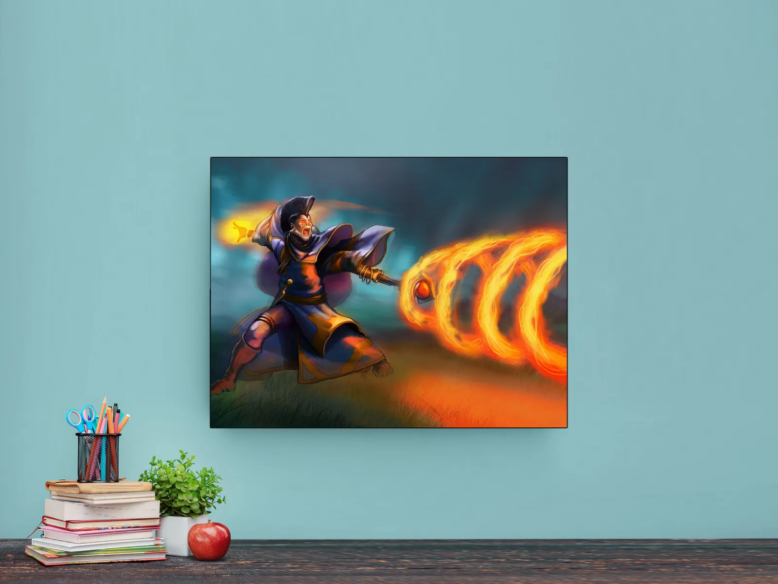Therefore, this artwork is ideal for fantasy art collectors, tabletop gamers seeking spellcaster inspiration, fans of Smunchy Games worlds, and anyone enhancing a studio or game room with high-energy character wall art.