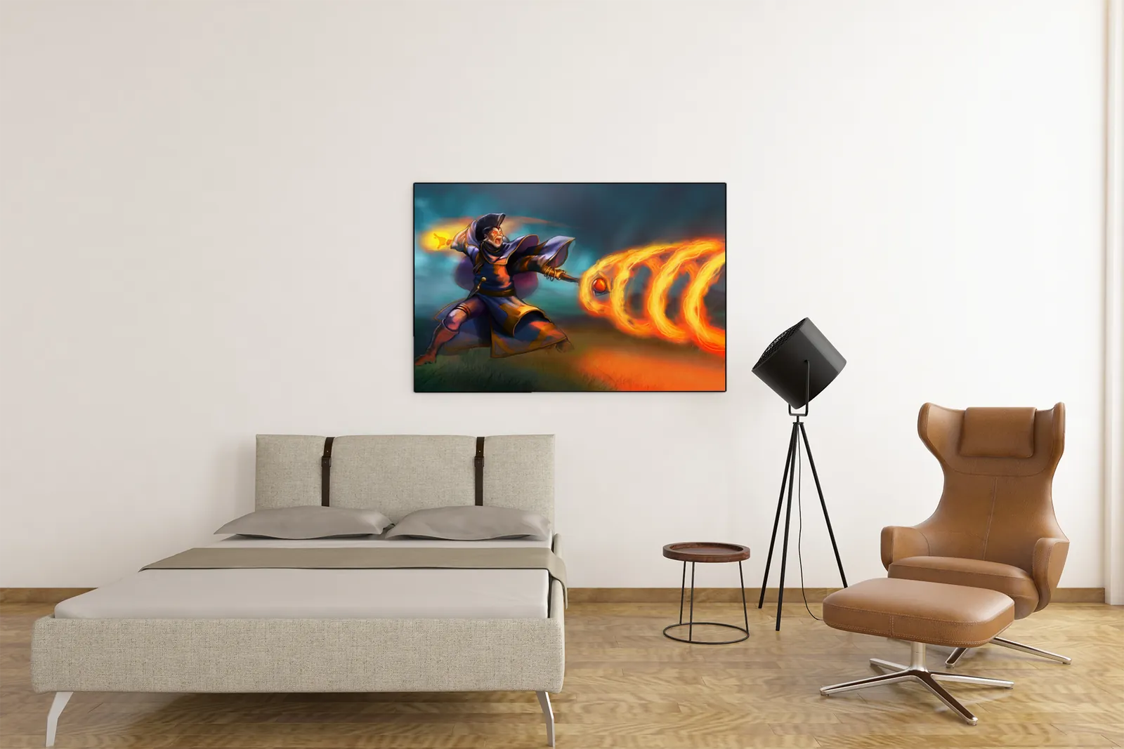 Finally, this art on canvas is produced for dramatic wall presence and longevity. Therefore, fiery highlights, rich color gradients, and expressive motion remain vivid at display sizes. Above all, Aiden Hausdrow canvas art functions as collectible wall art and a striking centerpiece for fans of character-driven fantasy combat.