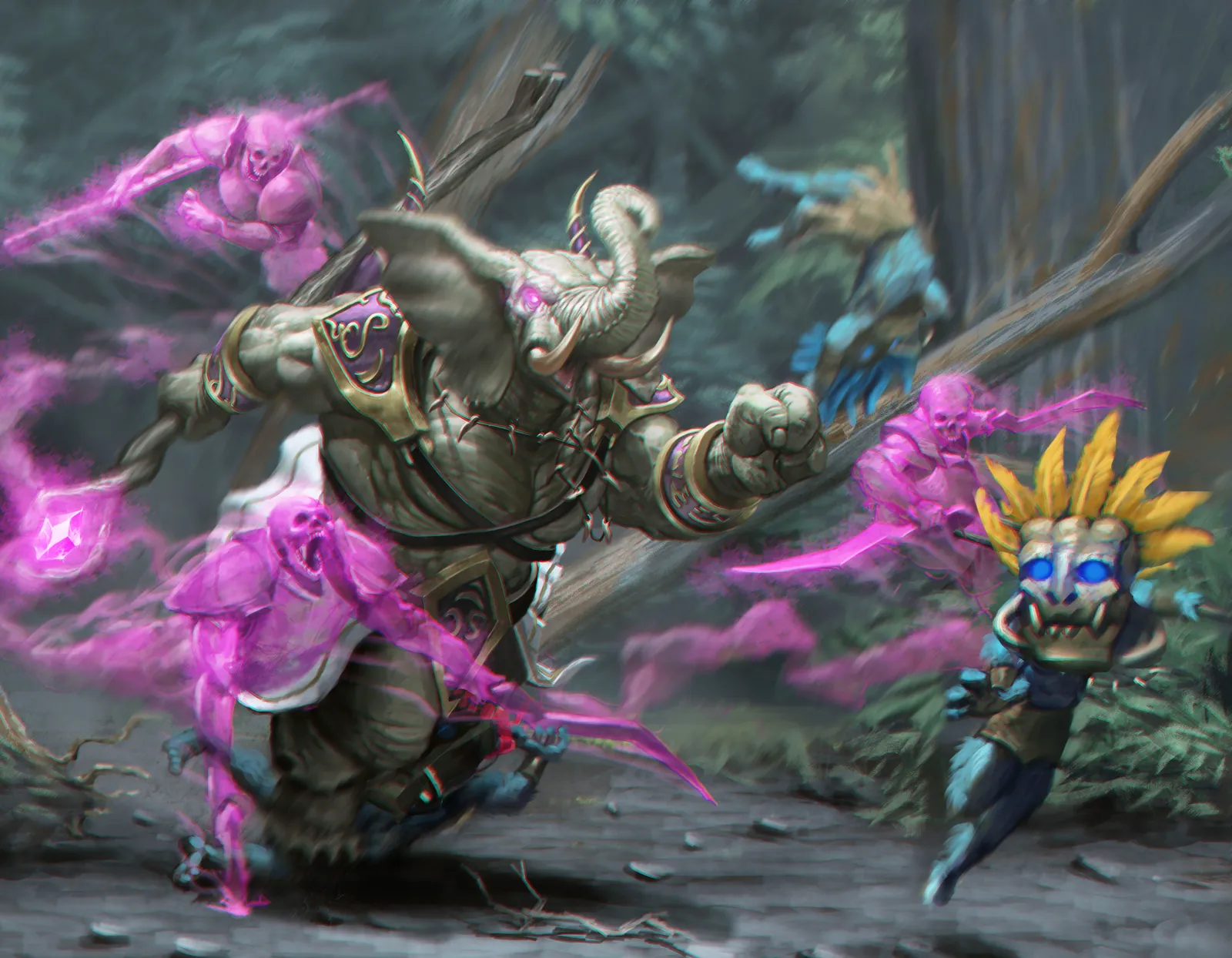 Moreover, the blurred motion and ghostly figures emphasize supernatural speed and pressure. However, the central form remains powerful and readable. Consequently, Akkenta stands as the clear focus amid the chaos. Additionally, this piece reflects the tone of Smunchy Games worlds through action-driven visual storytelling rather than exposition.