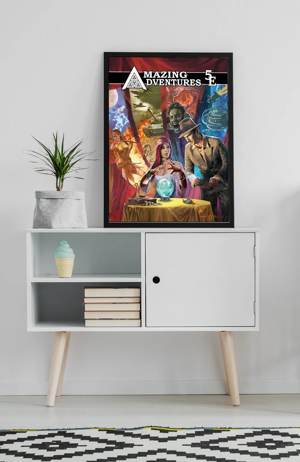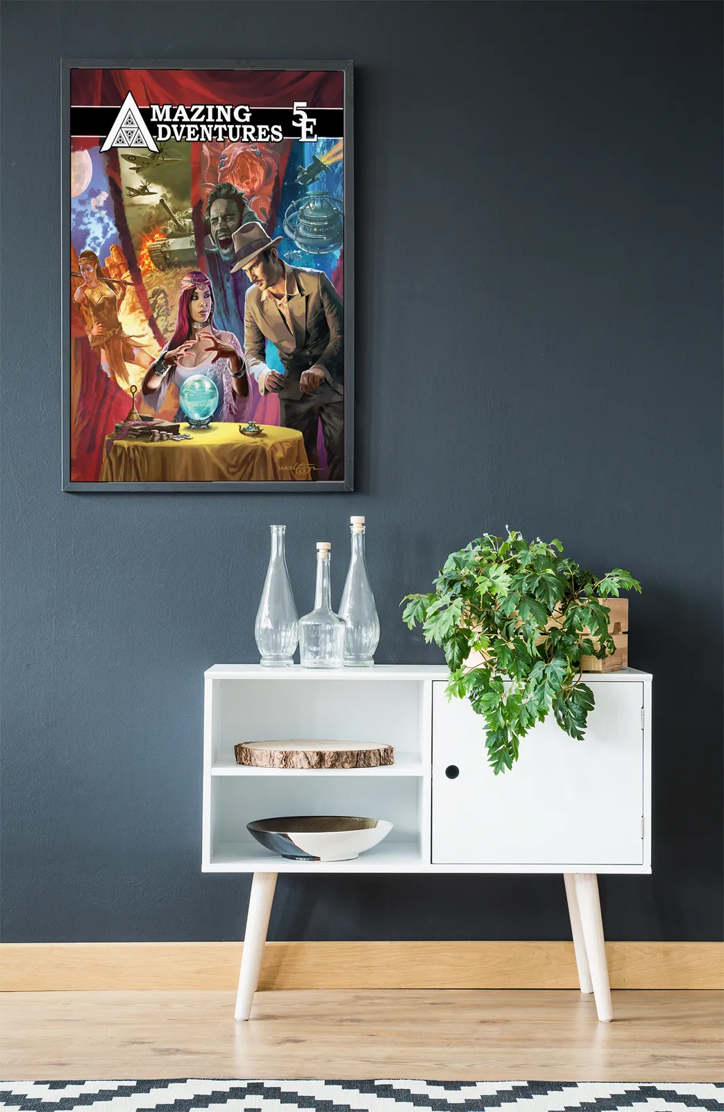 Ideal for tabletop roleplaying fans, collectors of fantasy and pulp artwork, game rooms, offices, or anyone seeking bold adventure-themed wall art.