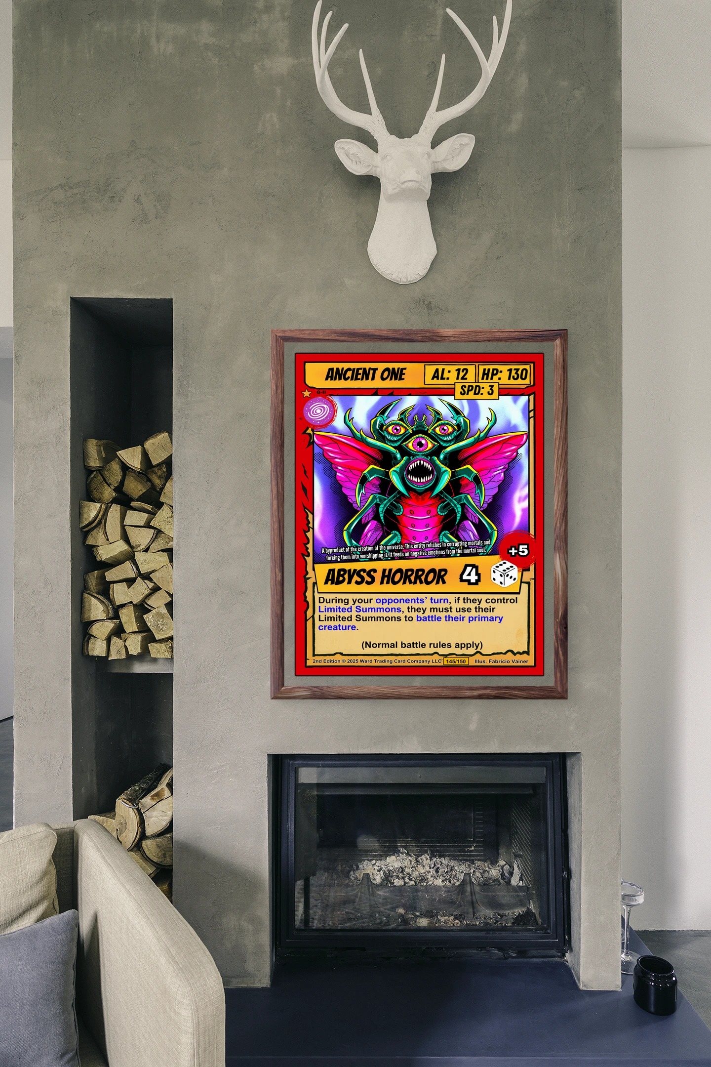 This piece works best in game rooms with other Ward TCG memorabilia. Additionally, it fits well above card storage or play tables.