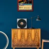 This piece works in game rooms where bold character art sets the tone. The high-contrast palette also reads clearly in low-light basement setups.