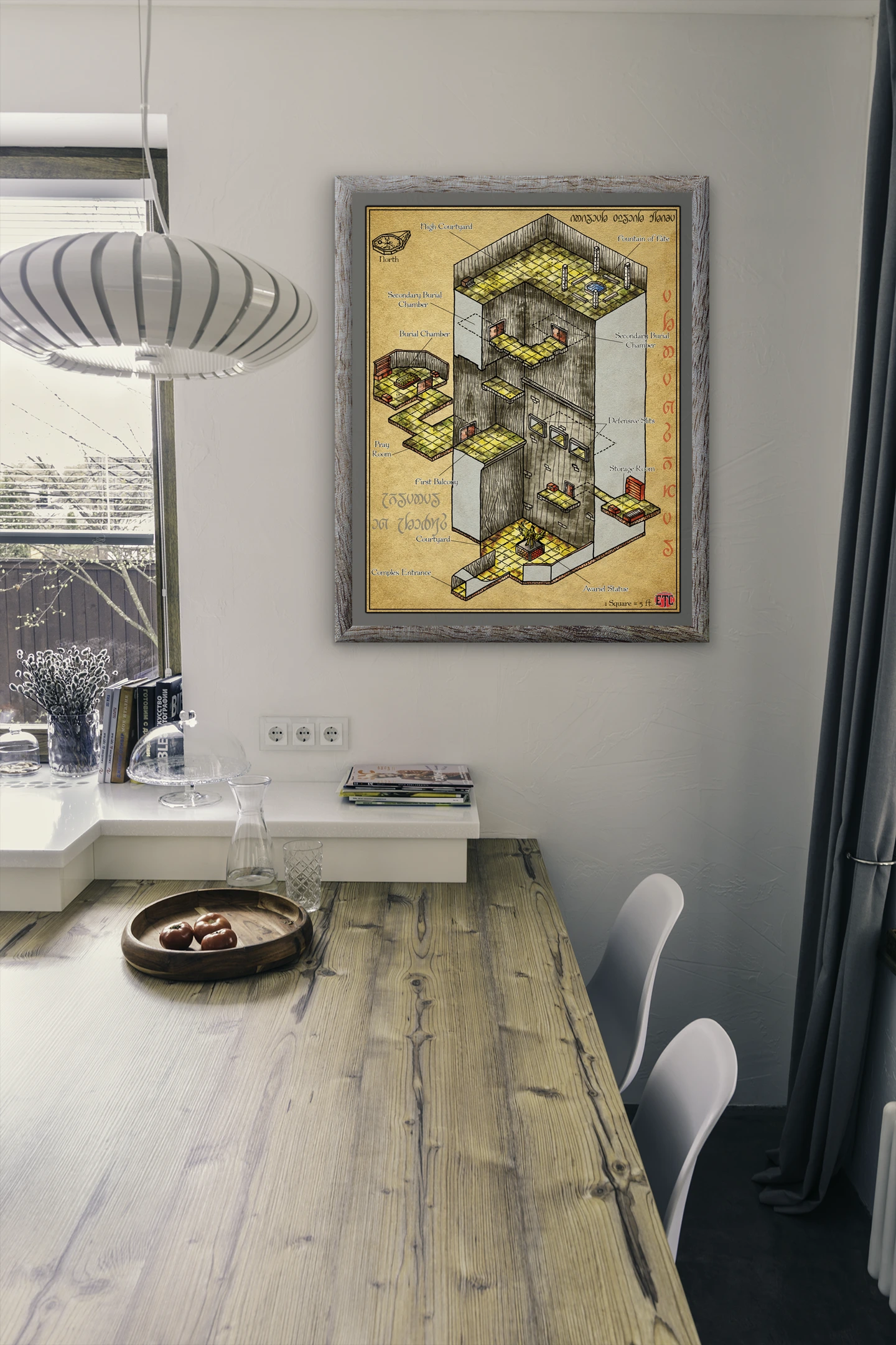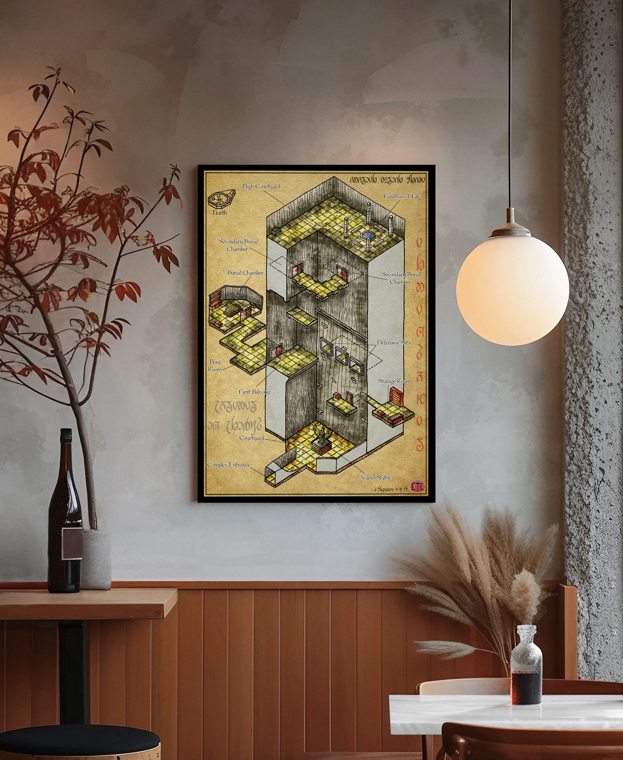 You run crypts, tombs, and ancient complexes where vertical space matters as much as floor plans. You prep encounters that use elevation, defensive positions, and layered room reveals across multiple sessions. Particularly, this avariel complex fantasy battle map canvas print shows every chamber relationship the party will navigate.