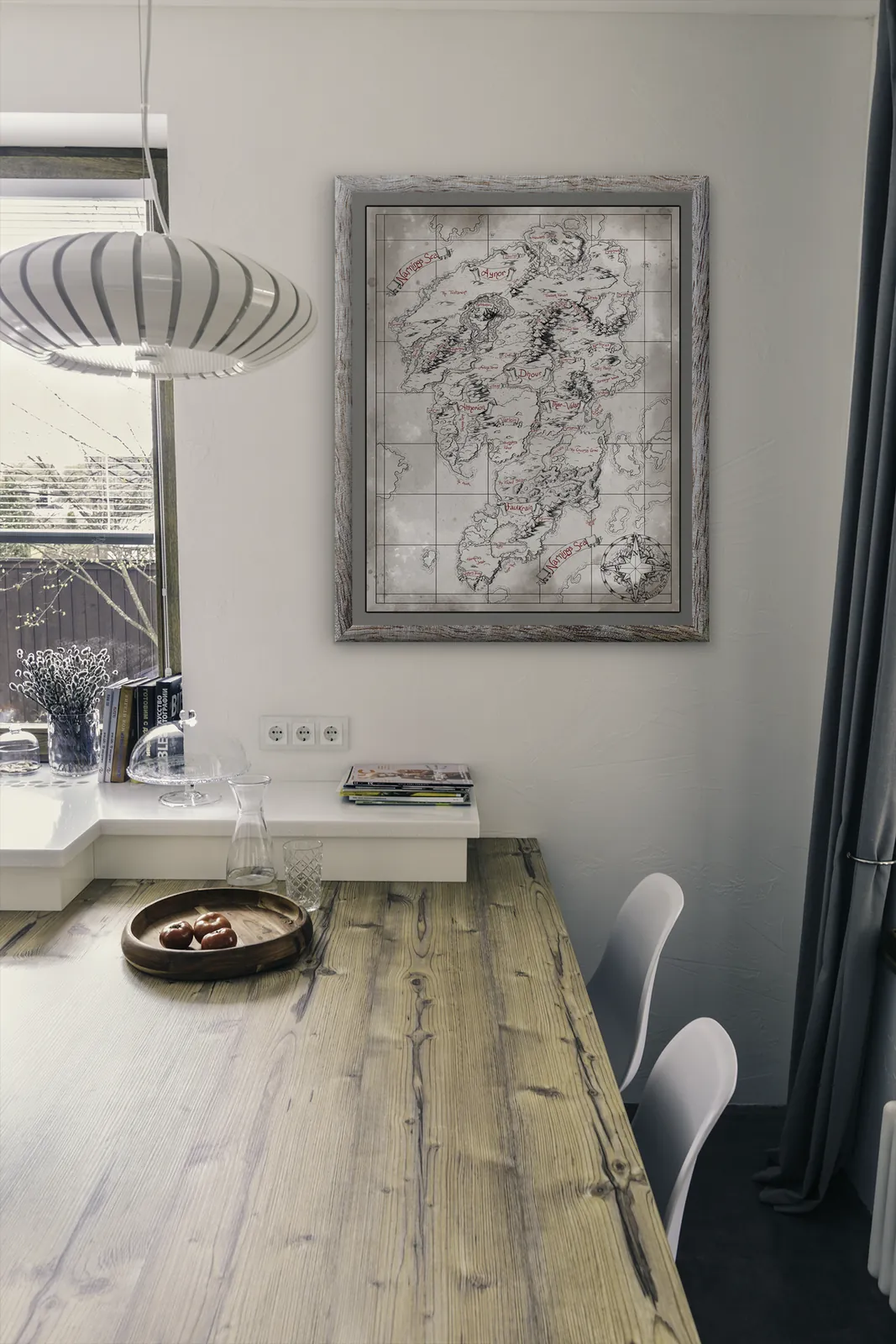 Moreover, this map is ideal for collectors, gamers, and tabletop fans who want a comprehensive world reference on a wall in a studio, game room, or creative space to support campaigns, travel planning, and lore development.