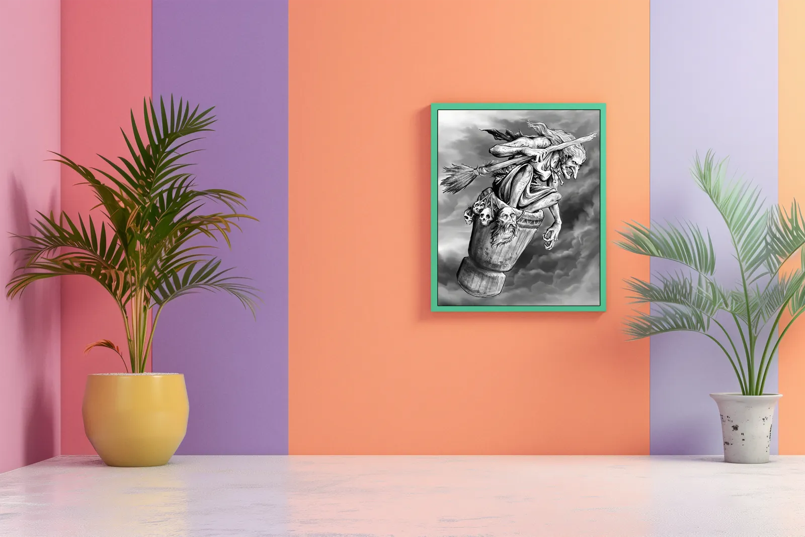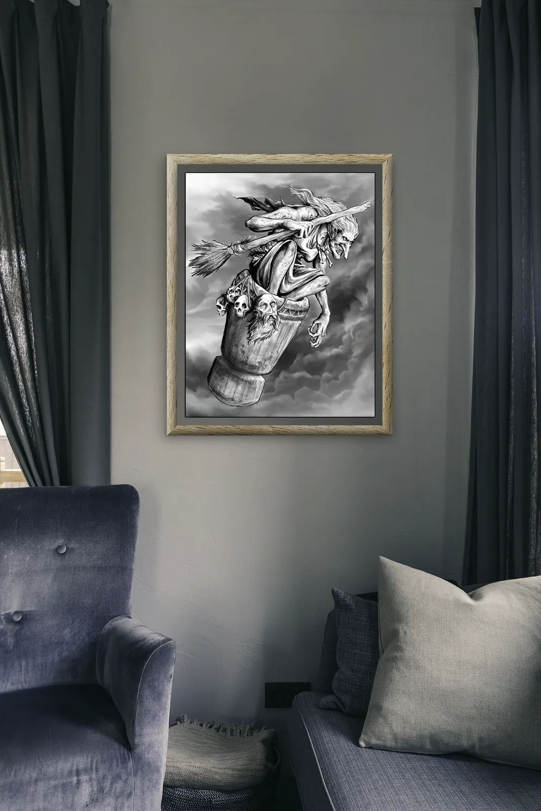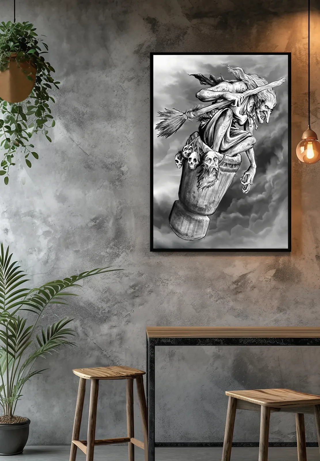 Moreover, collectors, gamers, or tabletop fans can use this as a dramatic wall focal point in a studio, game room, or creative space that thrives on dark storytelling energy.