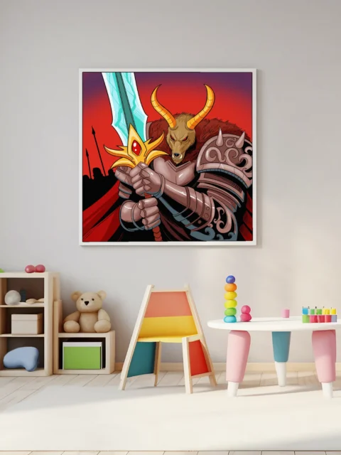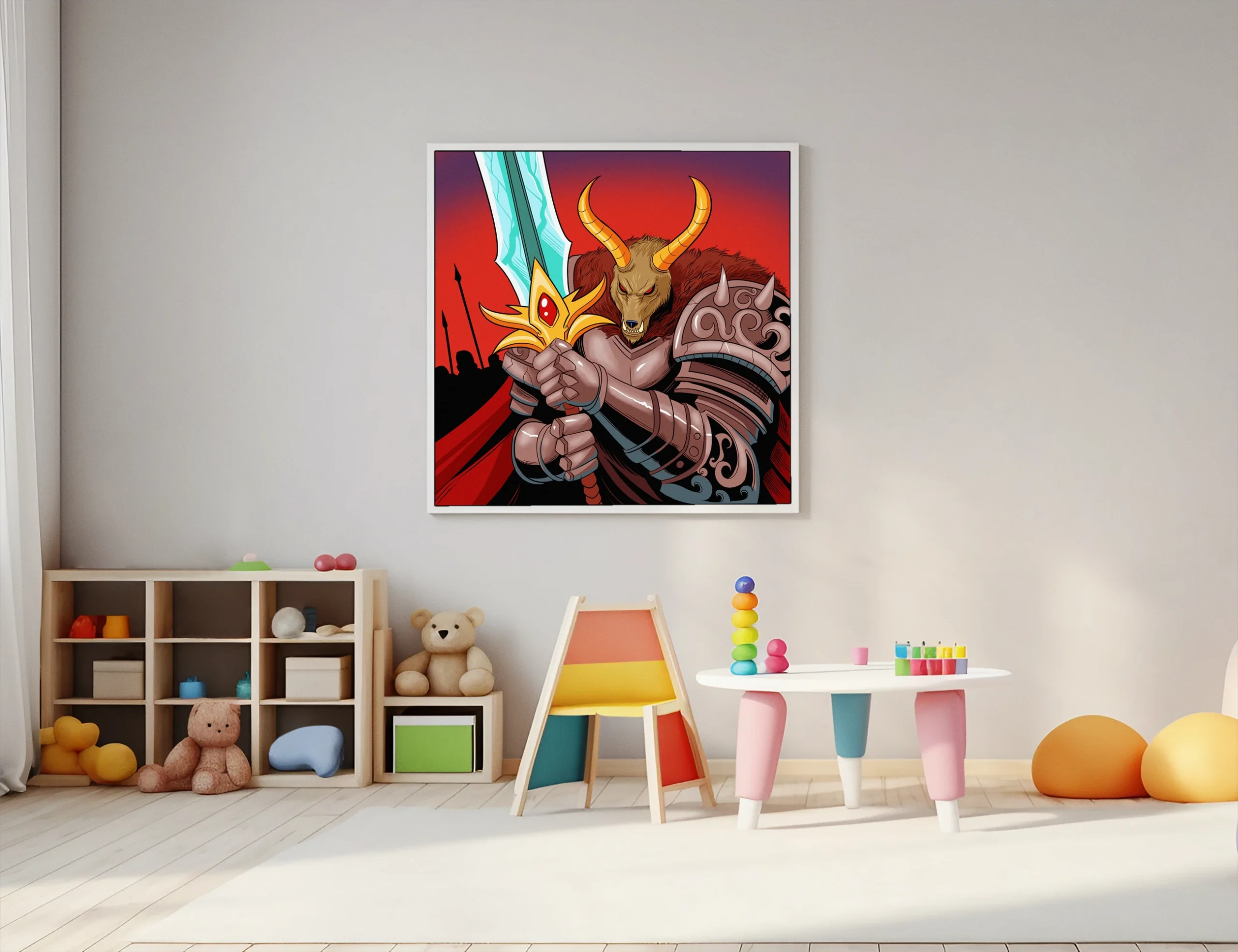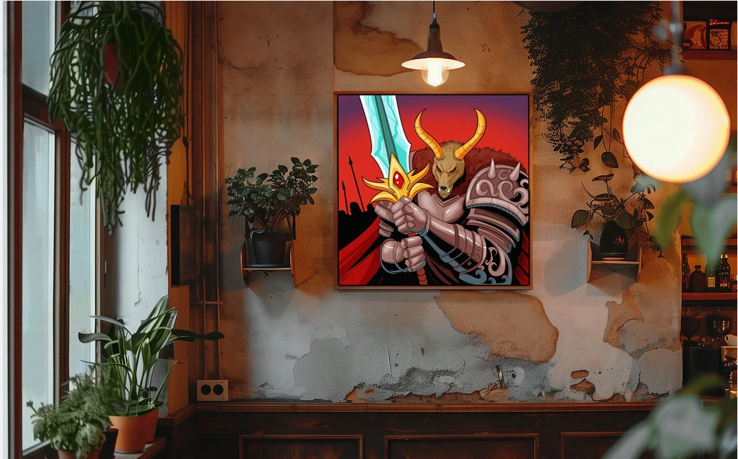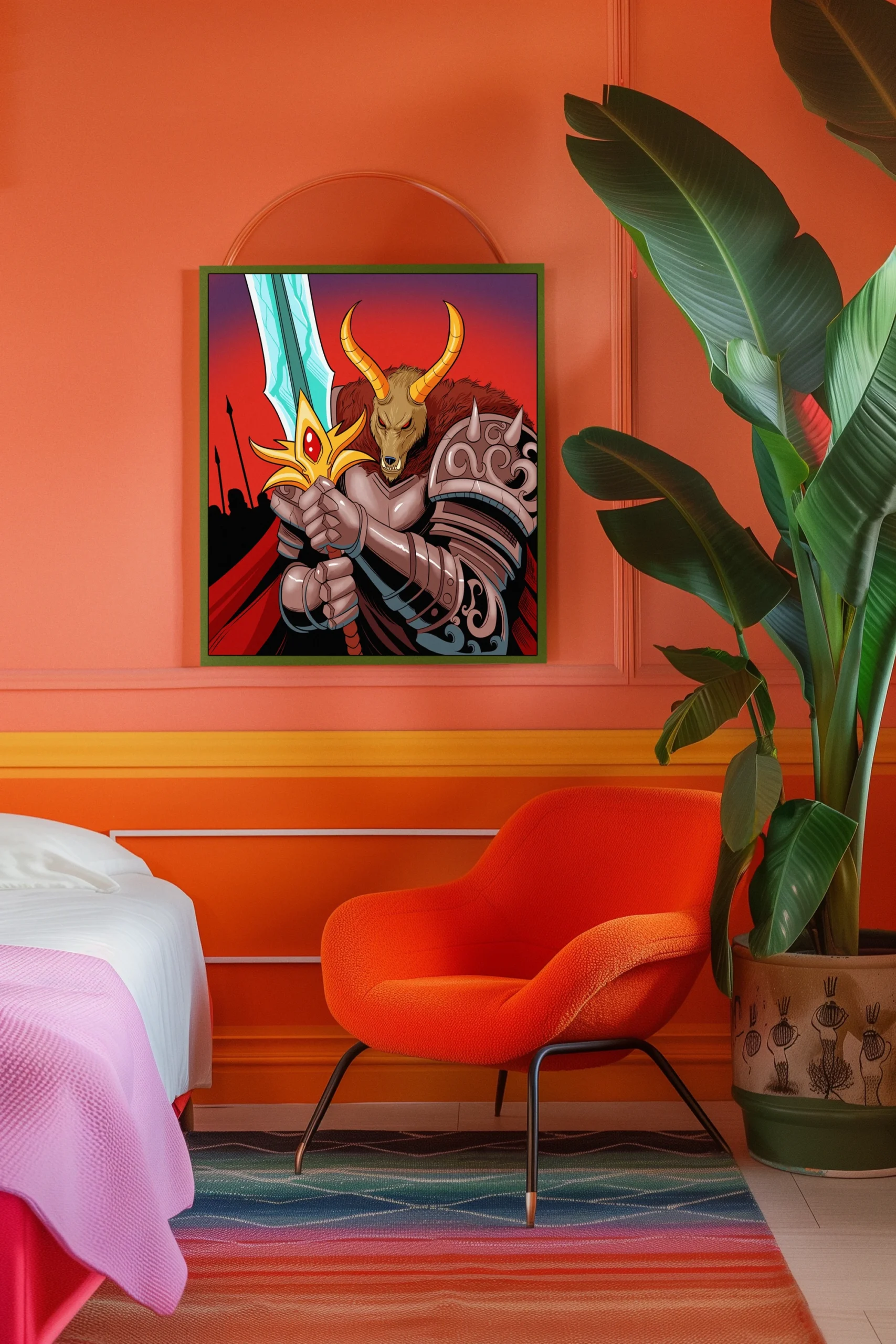 On the wall, the creature’s menacing presence reads as genuinely imposing at scale. This print appeals to Ward TCG collectors and fantasy creature art enthusiasts. The bestial champion art trading card art canvas print delivers gallery-ready impact without card borders.