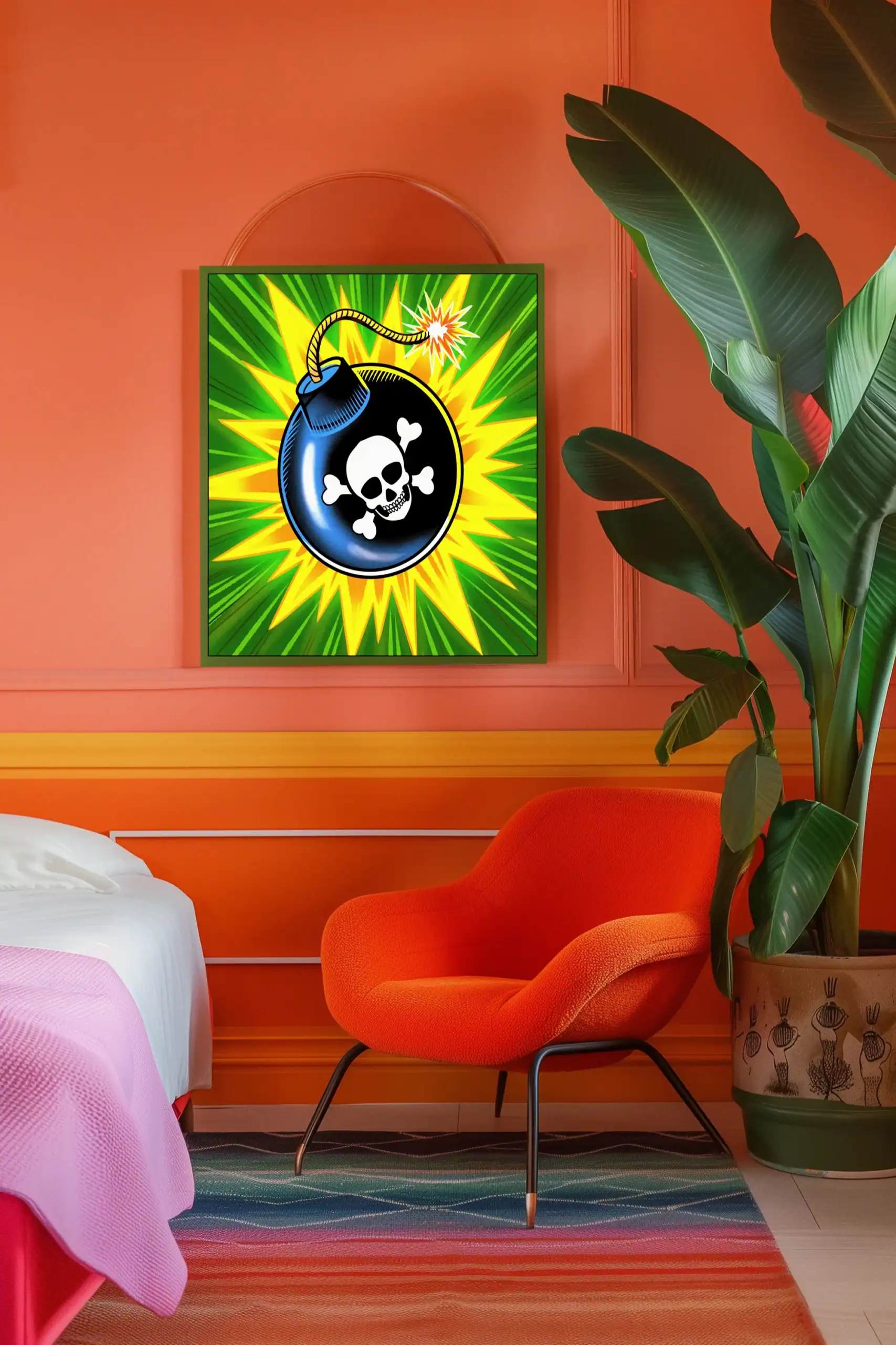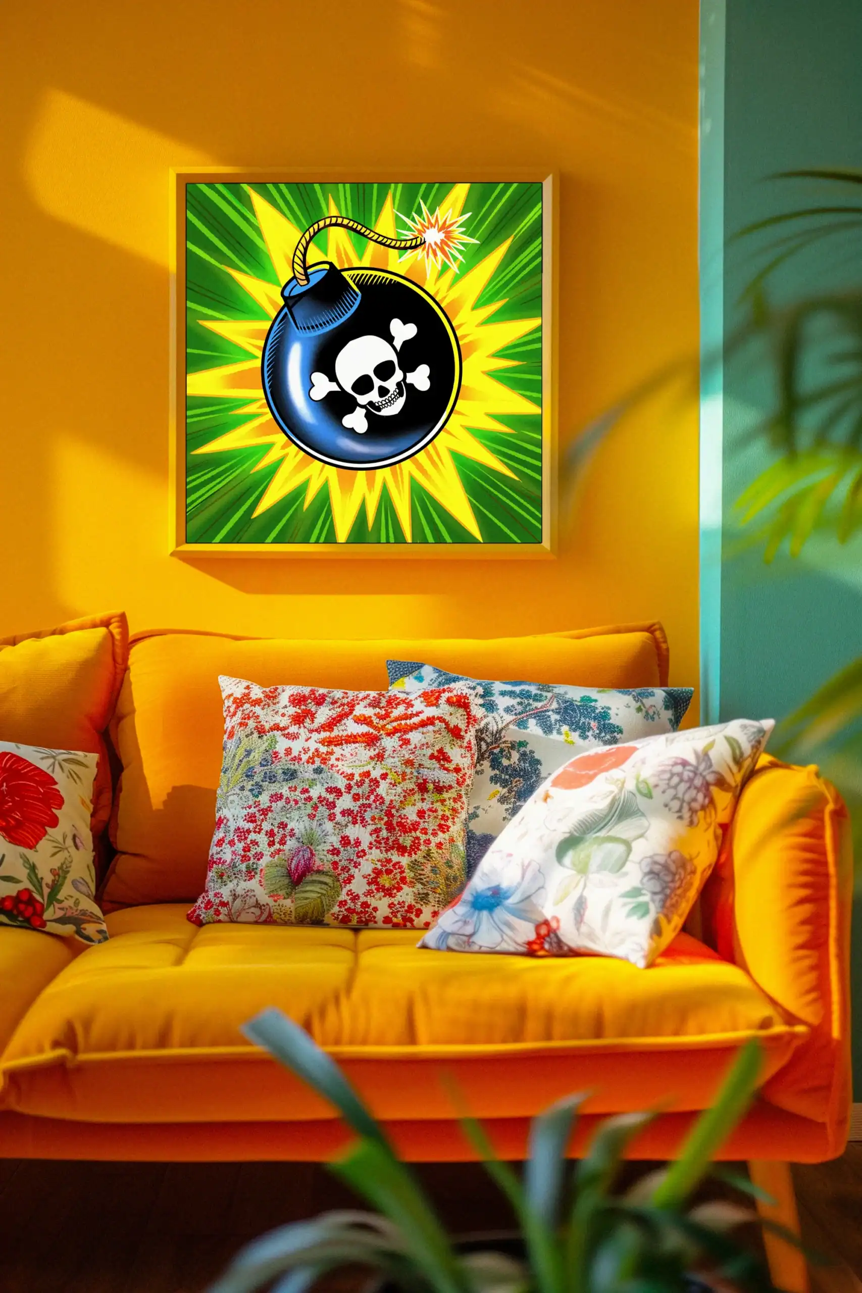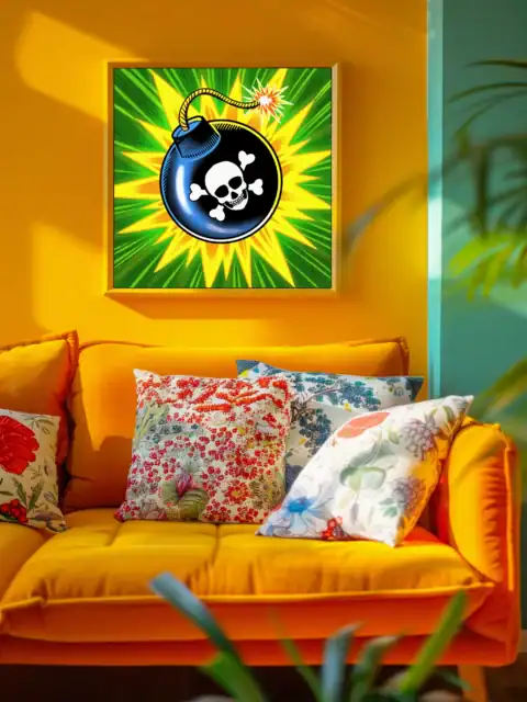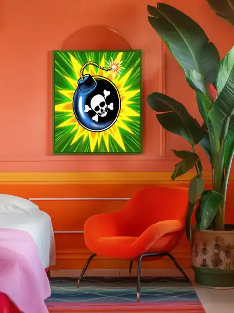Creative studios and gaming dens gain instant atmosphere from this explosive artwork. Furthermore, the bold colors and dramatic composition energize brainstorming sessions.