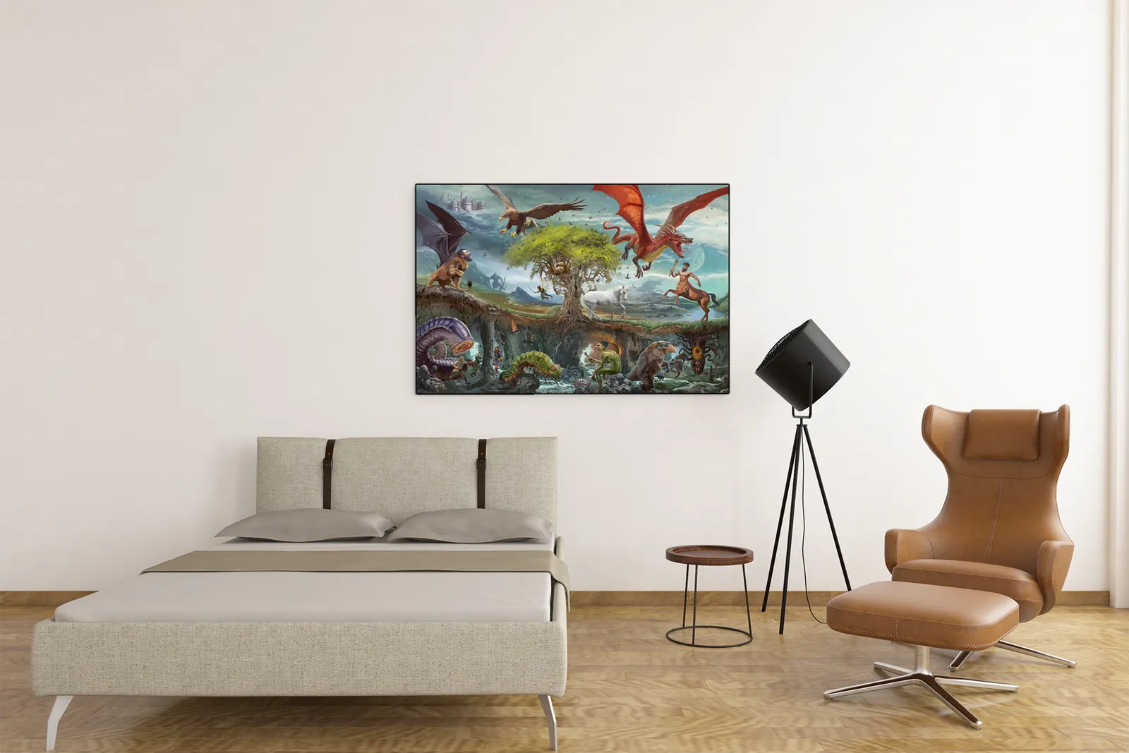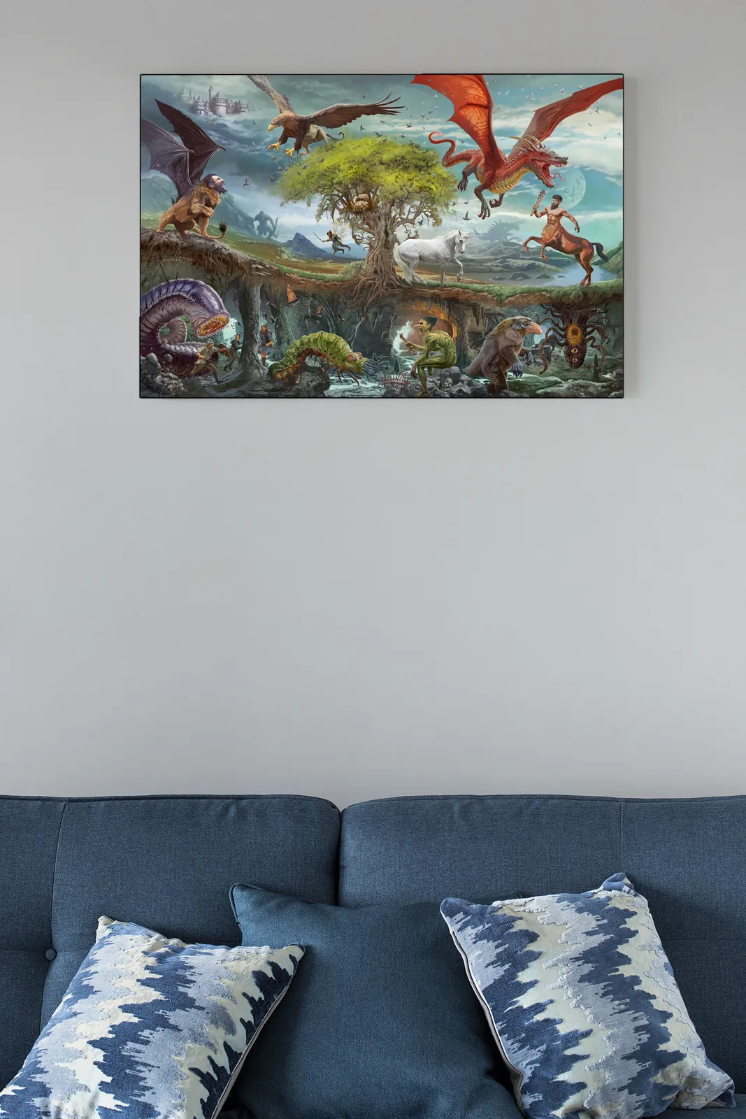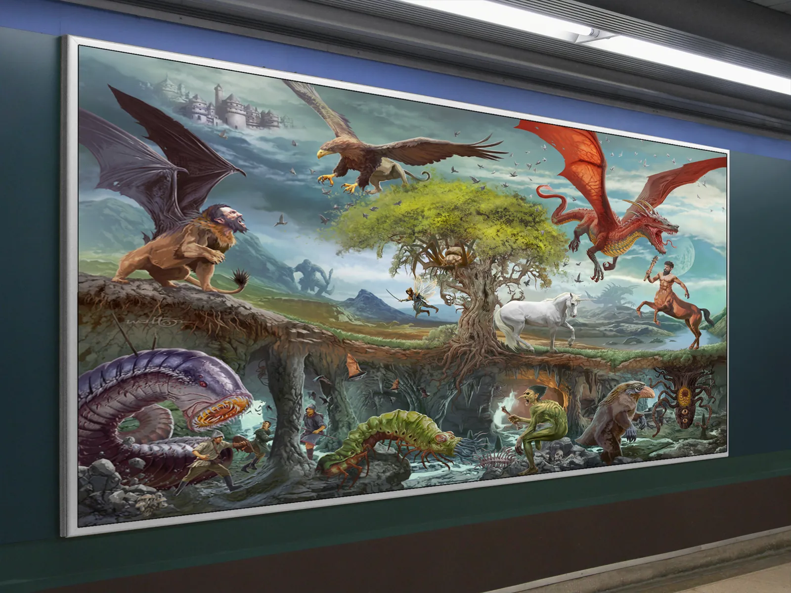 Moreover, the illustration balances action with clarity. Each creature is given space to breathe, allowing viewers to explore the scene without visual overload. Consequently, the artwork works equally well as a focal wall piece or as an inspirational reference for tabletop storytelling and worldbuilding.