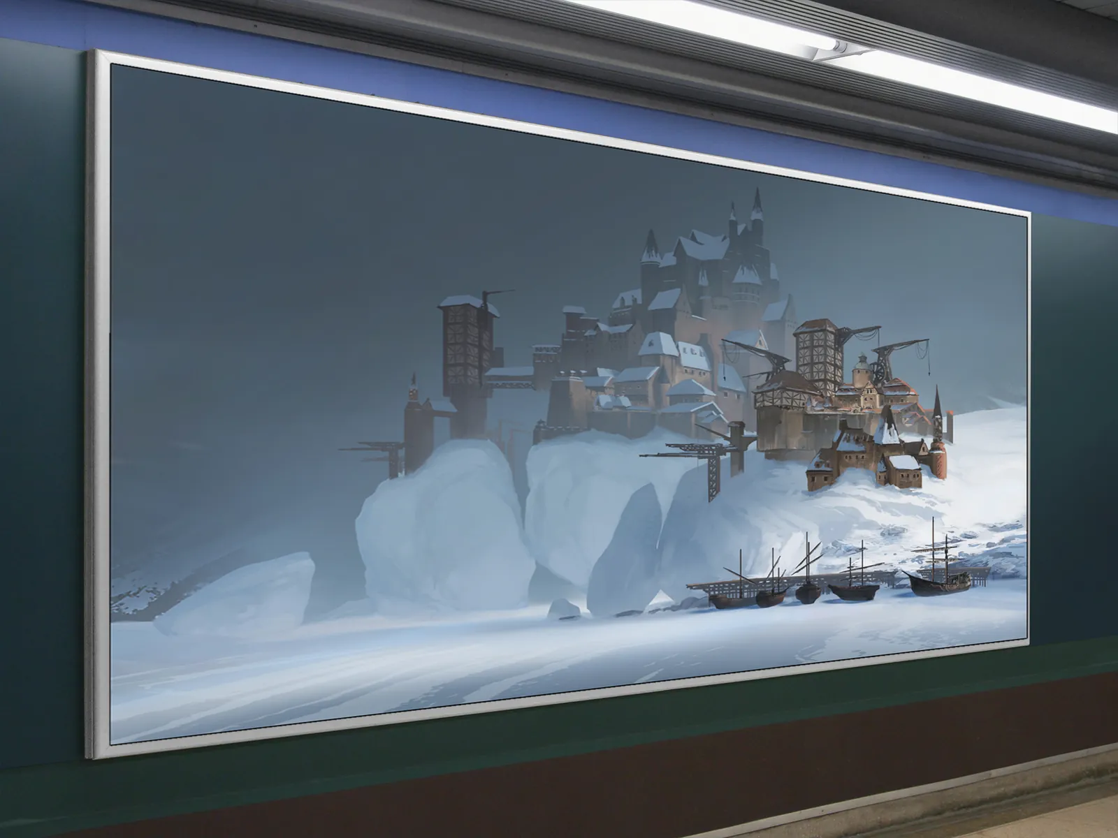 Candulhurst frozen cliffside stronghold rises from sheer ice walls as a fortified city clings to the edge of a hostile sea. From the first glance, scale and isolation dominate the composition. As a result, the environment feels imposing, remote, and resilient.