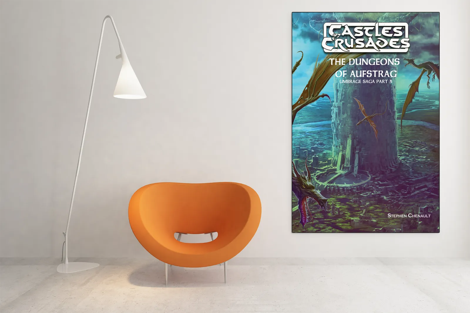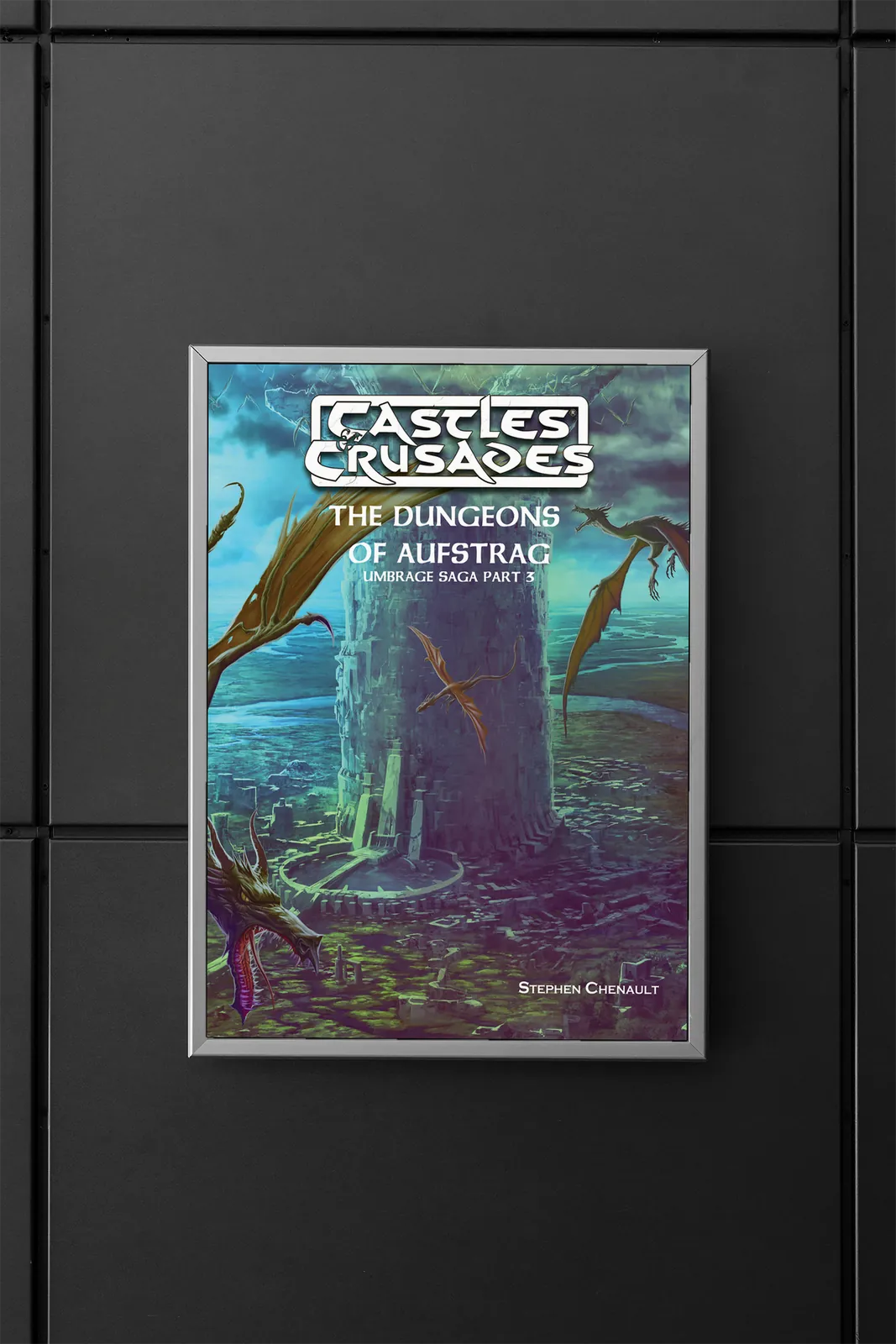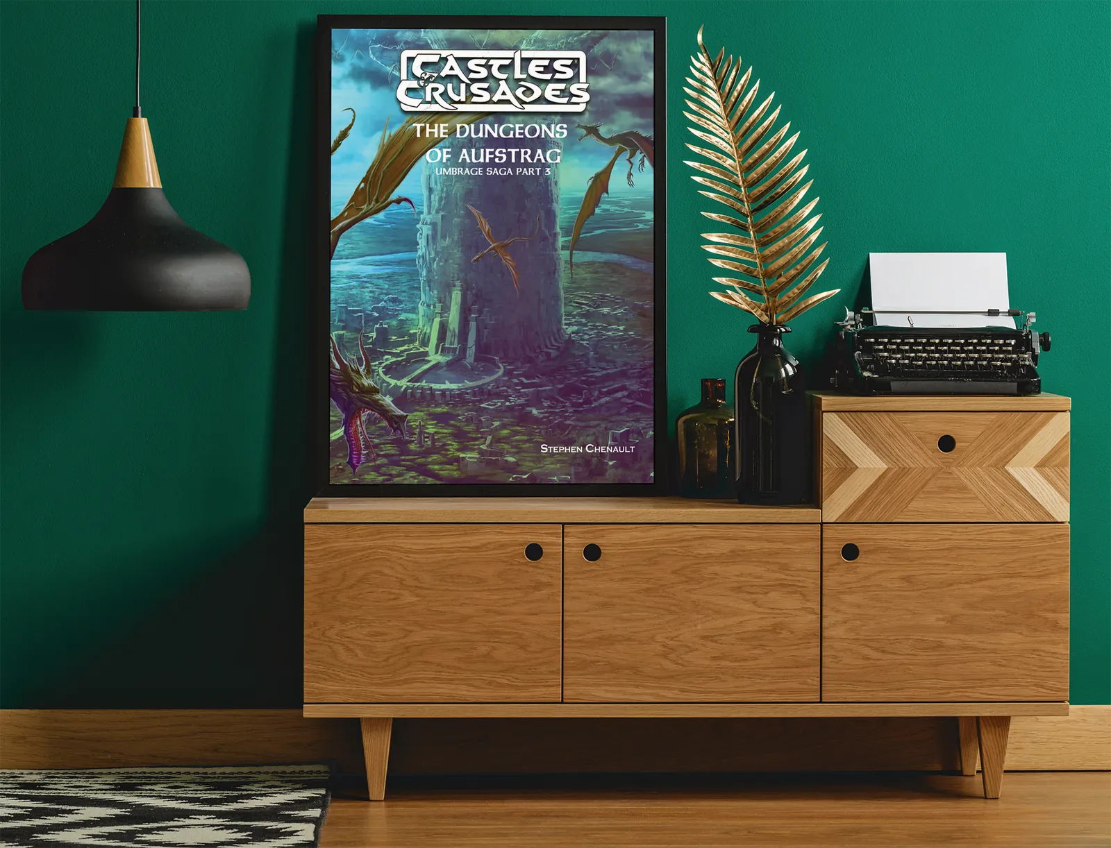 Finally, Castles & Crusades Aufstrag Cover Art functions as both a collector-focused display piece and a celebration of classic tabletop fantasy publishing. Above all, it captures the tone of high adventure, danger, and mythic exploration central to the Castles & Crusades setting.