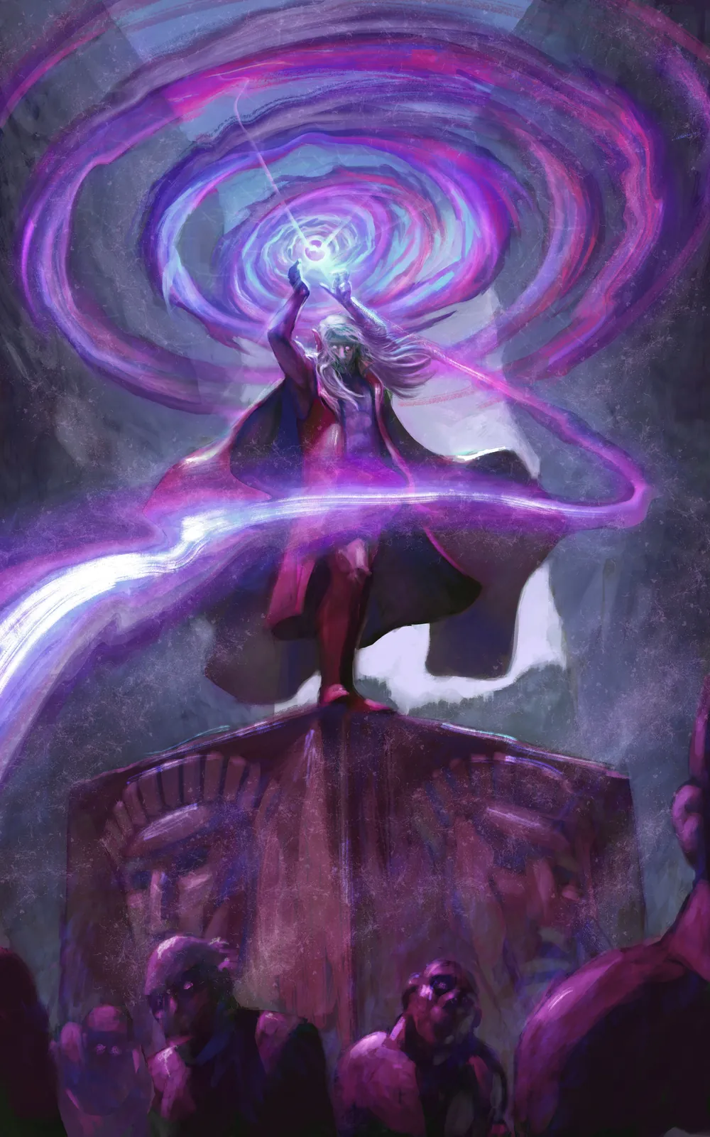 Corruption Variant arcane ascension illustration on canvas captures a spellcaster channeling unstable power as reality bends and fractures overhead. From the first moment, motion and energy dominate the scene. As a result, the artwork feels volatile, dangerous, and ritualistic.