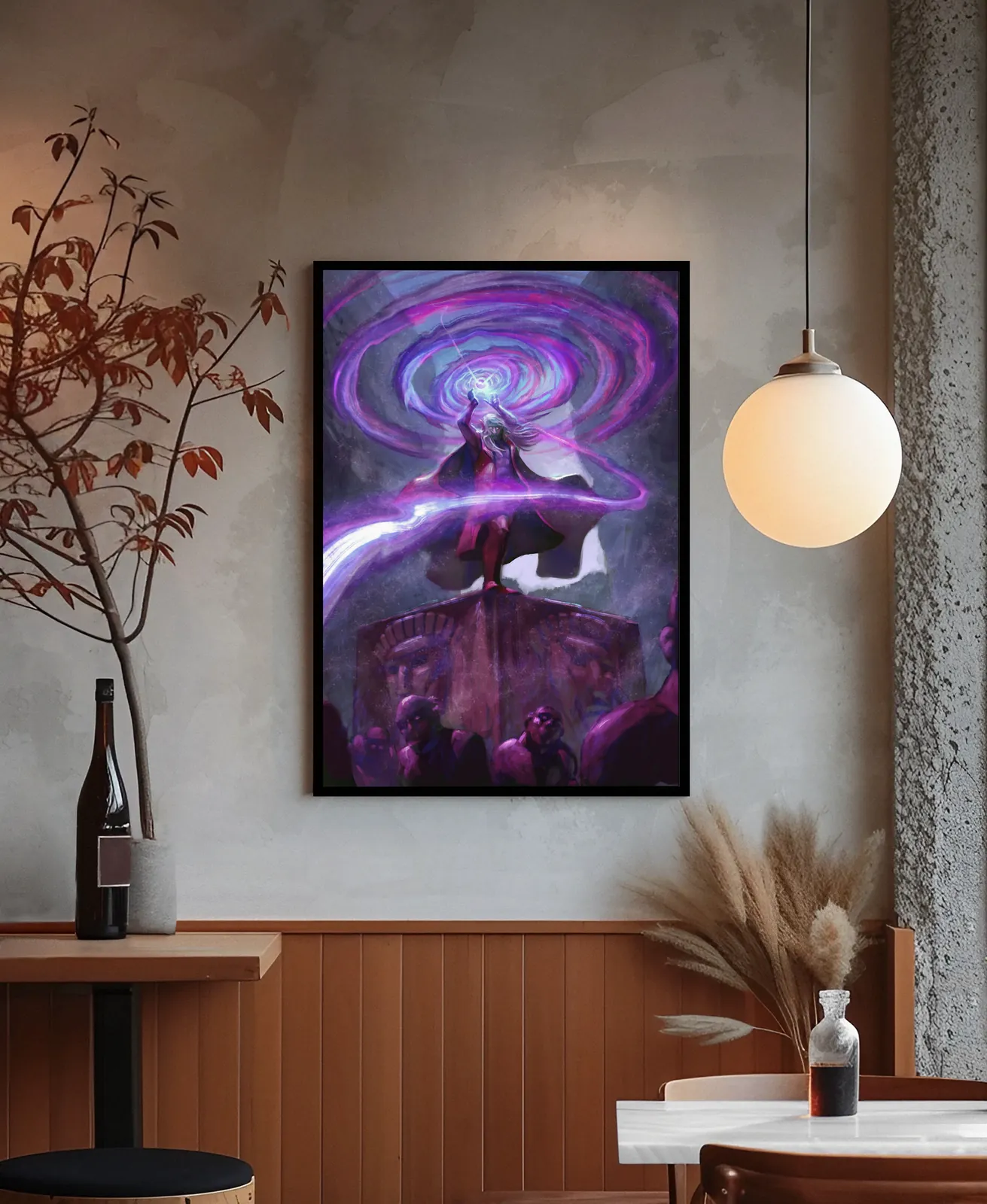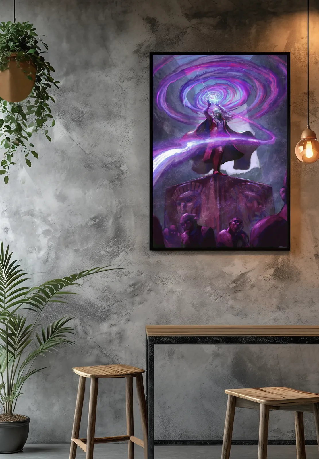 Finally, this illustration on canvas is produced for dramatic wall presentation and long-term durability. Therefore, layered light effects, painterly textures, and color transitions remain vivid at larger sizes. Above all, Corruption Variant arcane ascension illustration on canvas functions as collectible display art and a striking focal point for fans of dark magic fantasy.