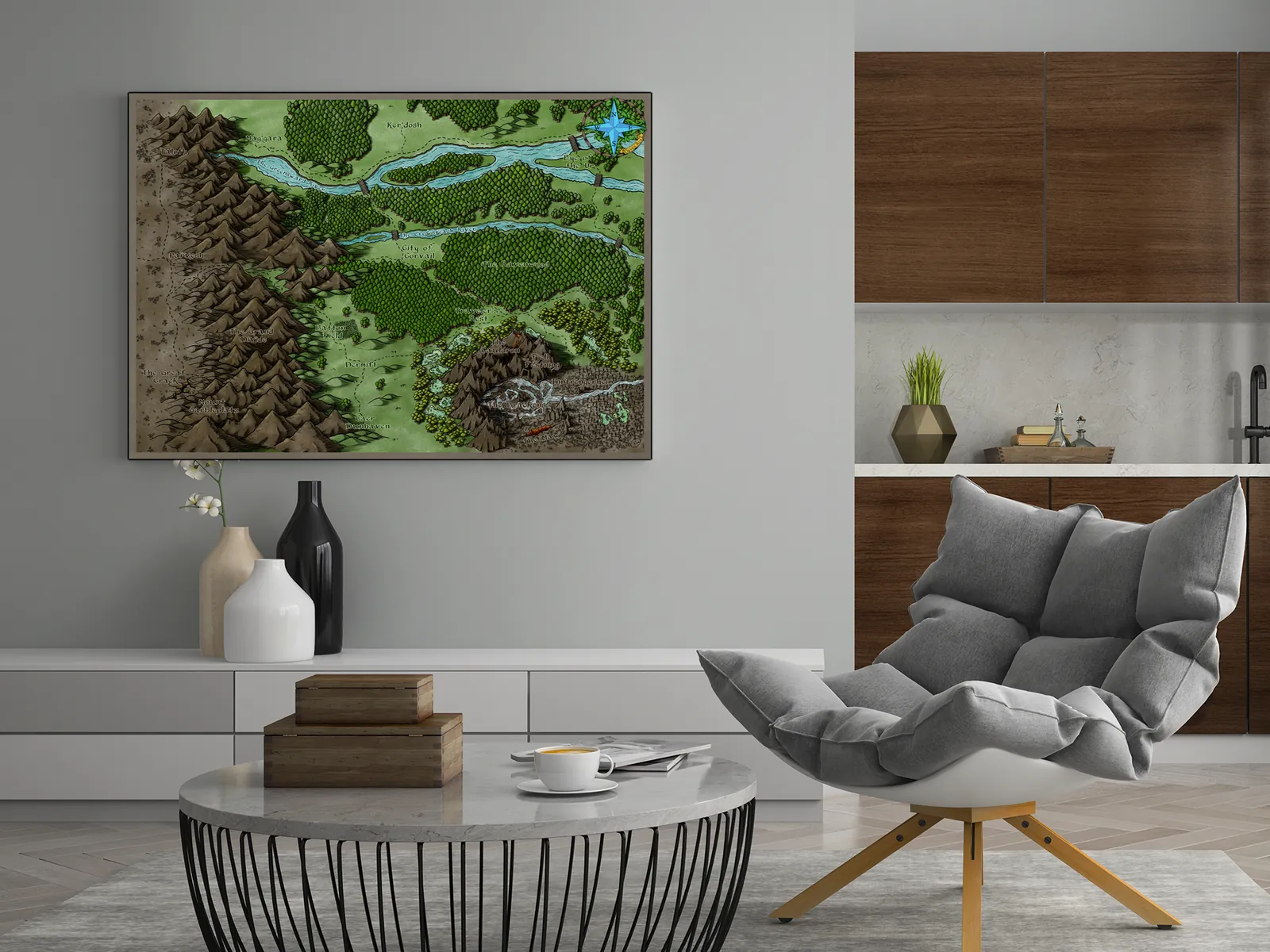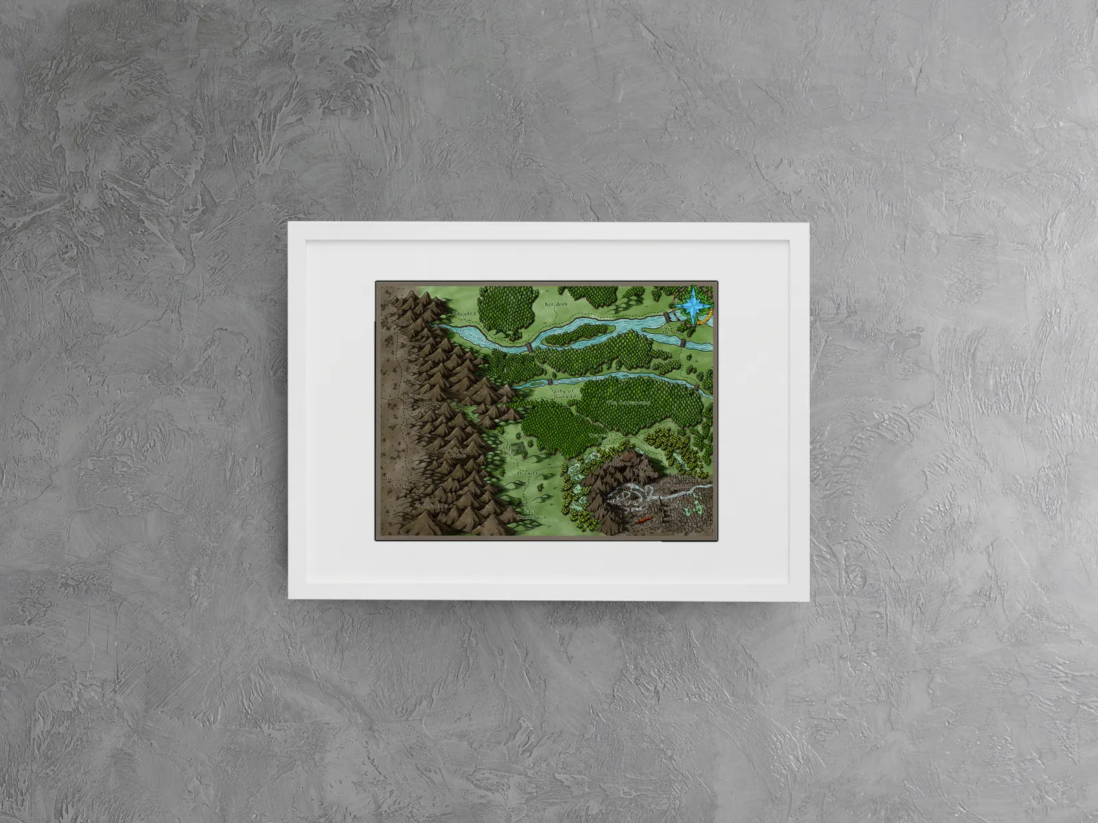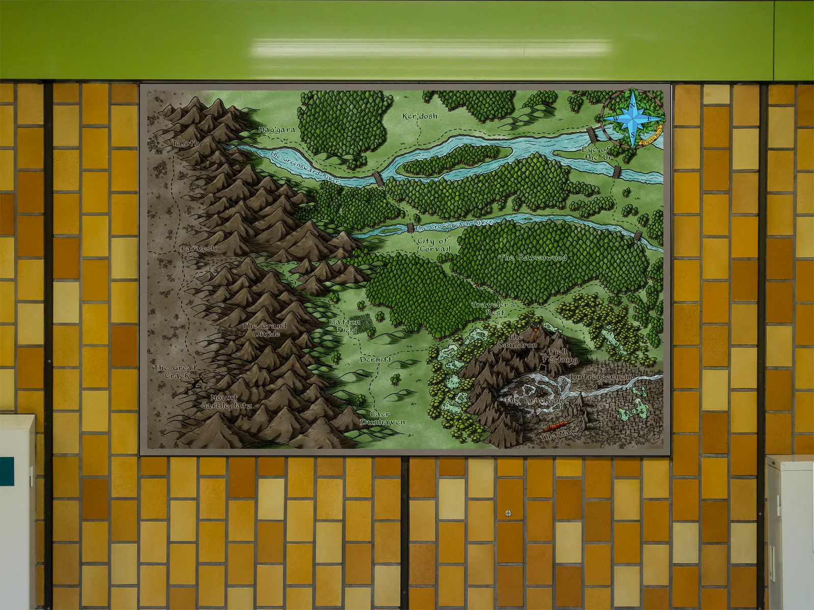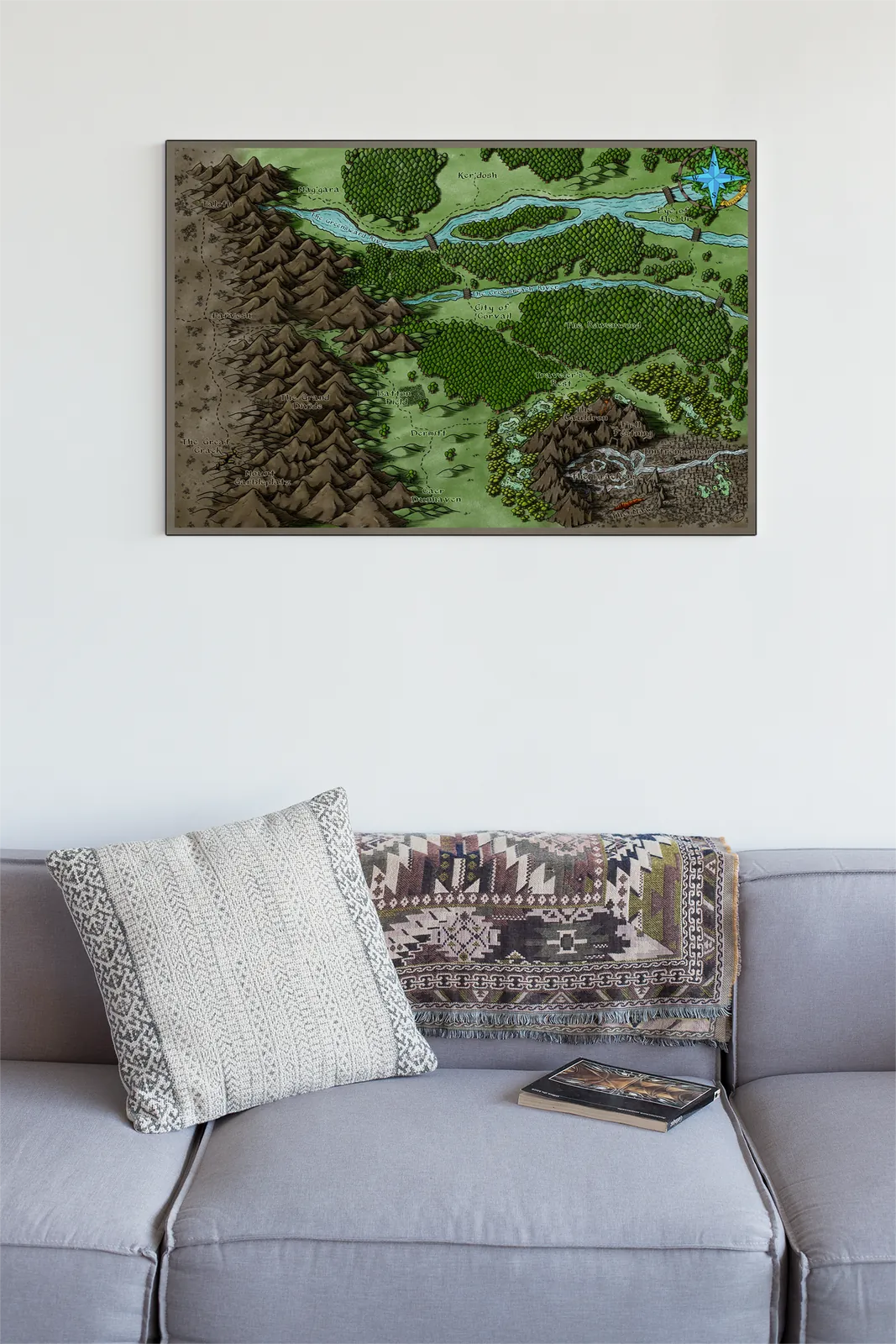 Moreover, this map is ideal for collectors, gamers, and tabletop fans who want a regional setting reference on a wall in a studio, game room, or creative space to support exploration, travel encounters, and local lore development.