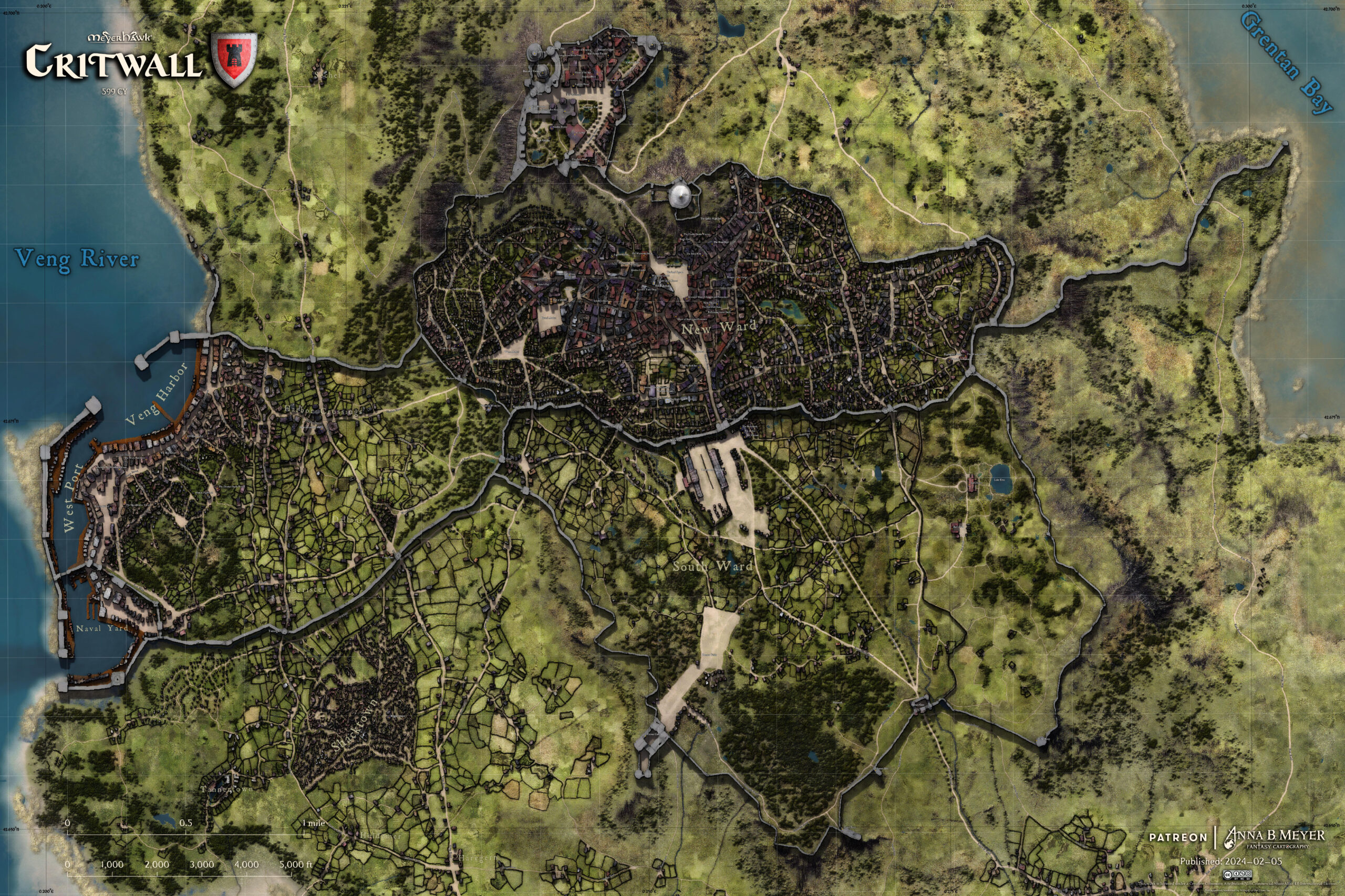 Finally, the Critwall City Fantasy Map presents a city that feels lived in and enduring. Above all, it serves as a strong foundation for stories of councils, patrols, rival factions, and secrets hidden behind stone walls. Therefore, this setting works especially well for long campaigns and thoughtful exploration.