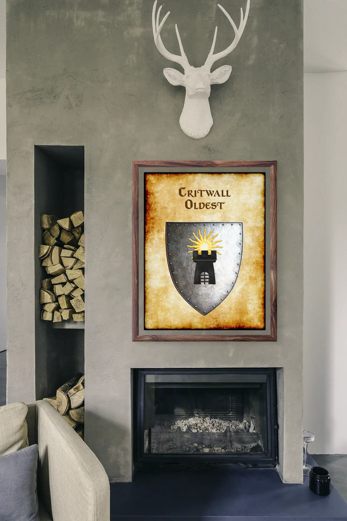 A home office where campaign prep happens gains focused atmosphere from Critwall’s defensive symbolism. Furthermore, the medieval aesthetic supports worldbuilding sessions in the Shield Lands borderlands.