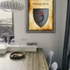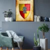 Creative studios and gaming dens gain gravitas from this weathered heraldic display. Furthermore, the piece provides visual inspiration during character creation and worldbuilding sessions.