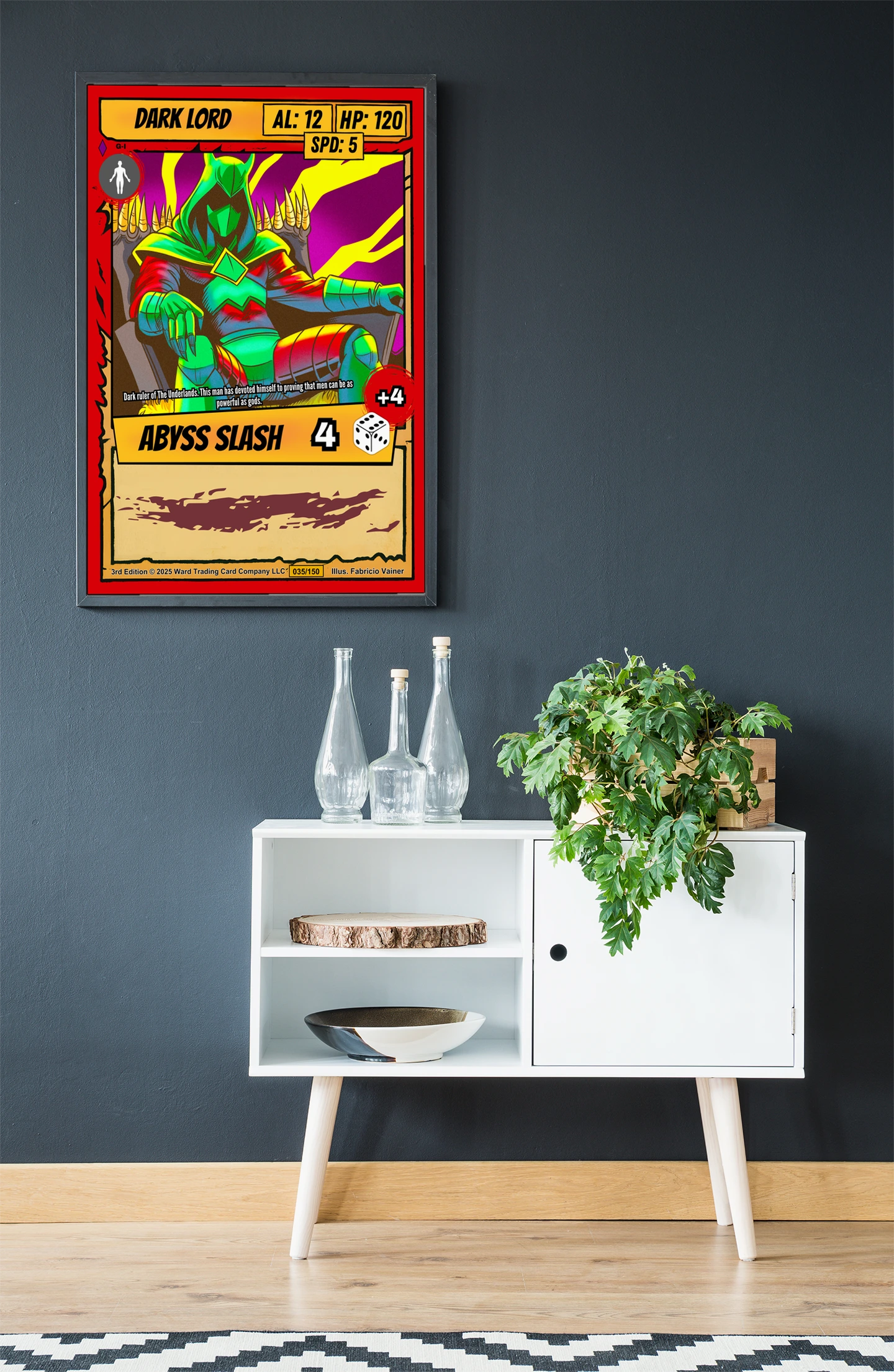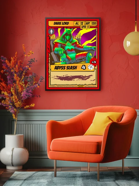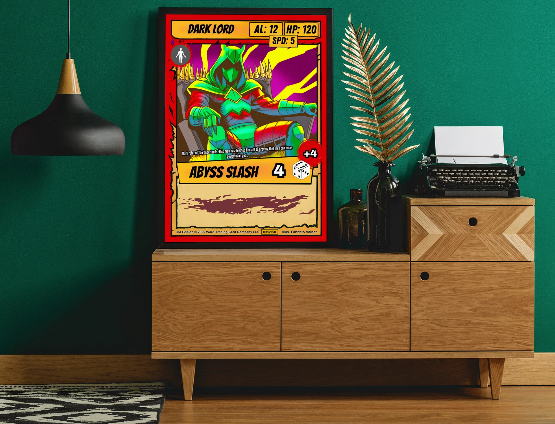 Owning this declares your appreciation for serious fantasy gaming art. TCG collectors recognize Vainer’s signature 1990s aesthetic and Ward’s growing reputation. Particularly, this dark lord trading card canvas print commands respect from fellow enthusiasts.