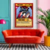 This piece works best in game rooms where bold comic art sets the tone. Additionally, it complements collections of vintage horror cartoon memorabilia and retro trading card displays.