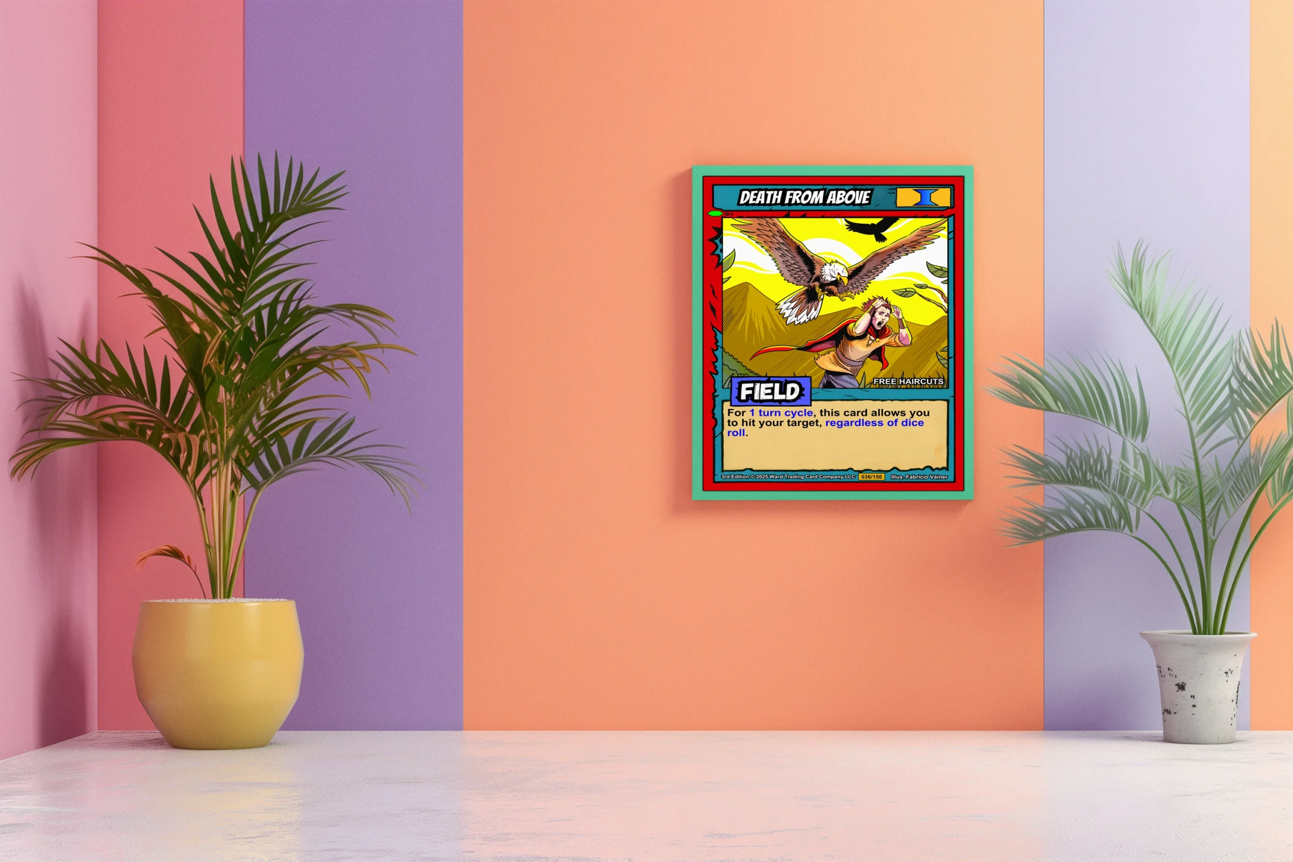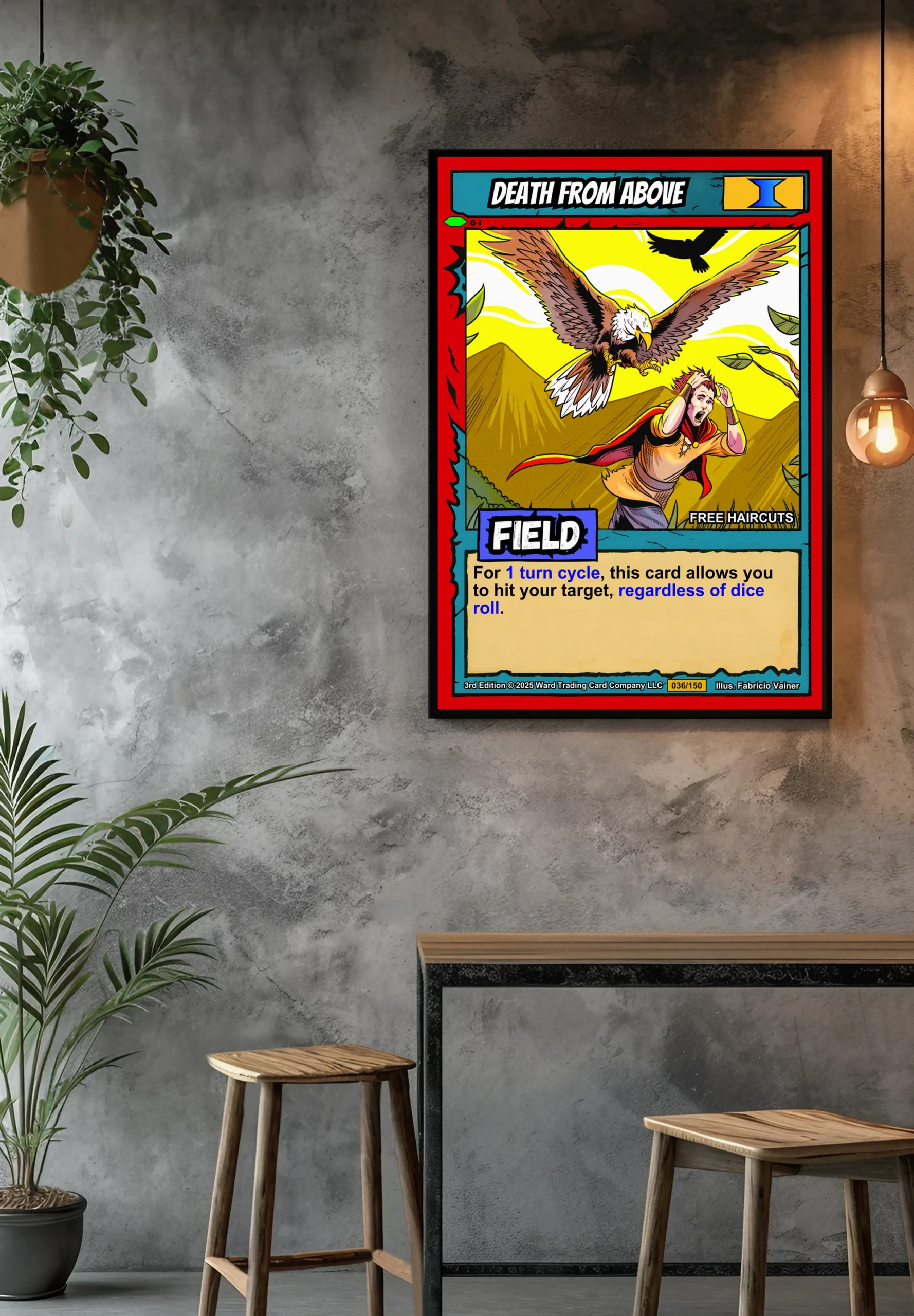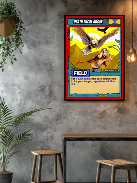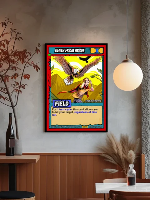 Dungeon masters recognize this as perfect ambush inspiration for their campaigns. TCG collectors value authentic 90s-style artwork with genuine game context. This death from above trading card canvas print particularly appeals to Ward enthusiasts.