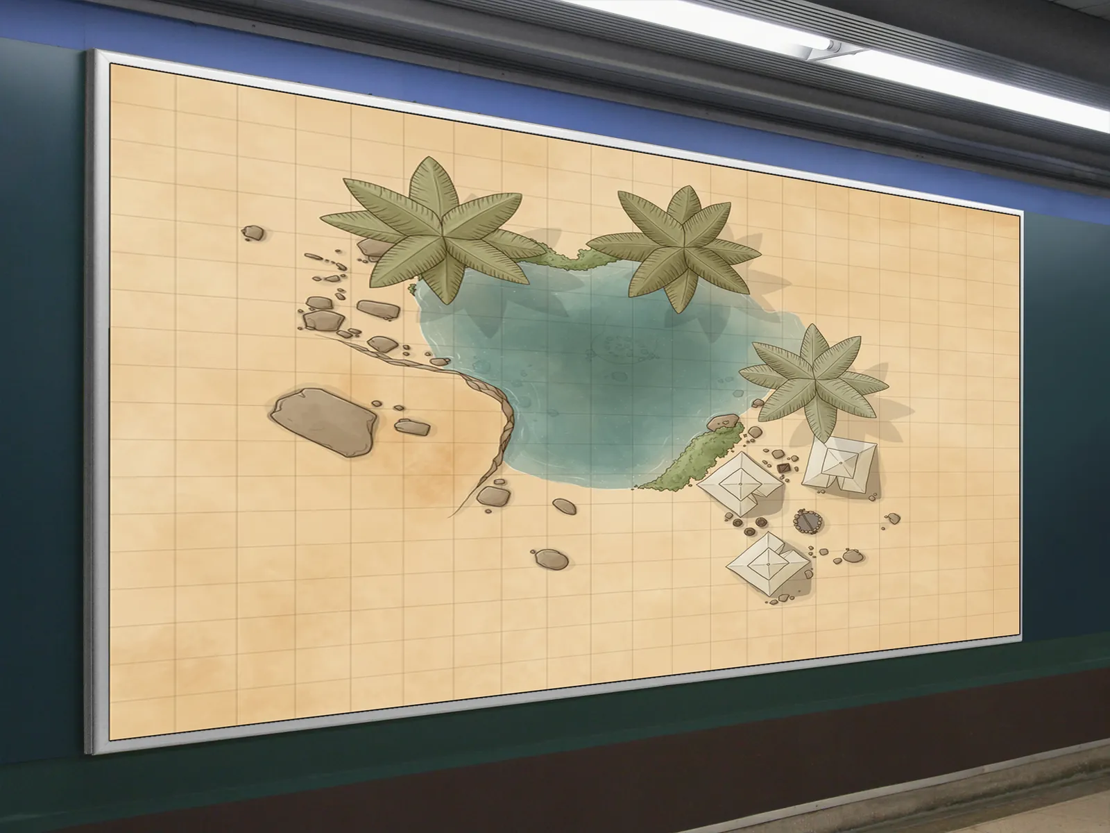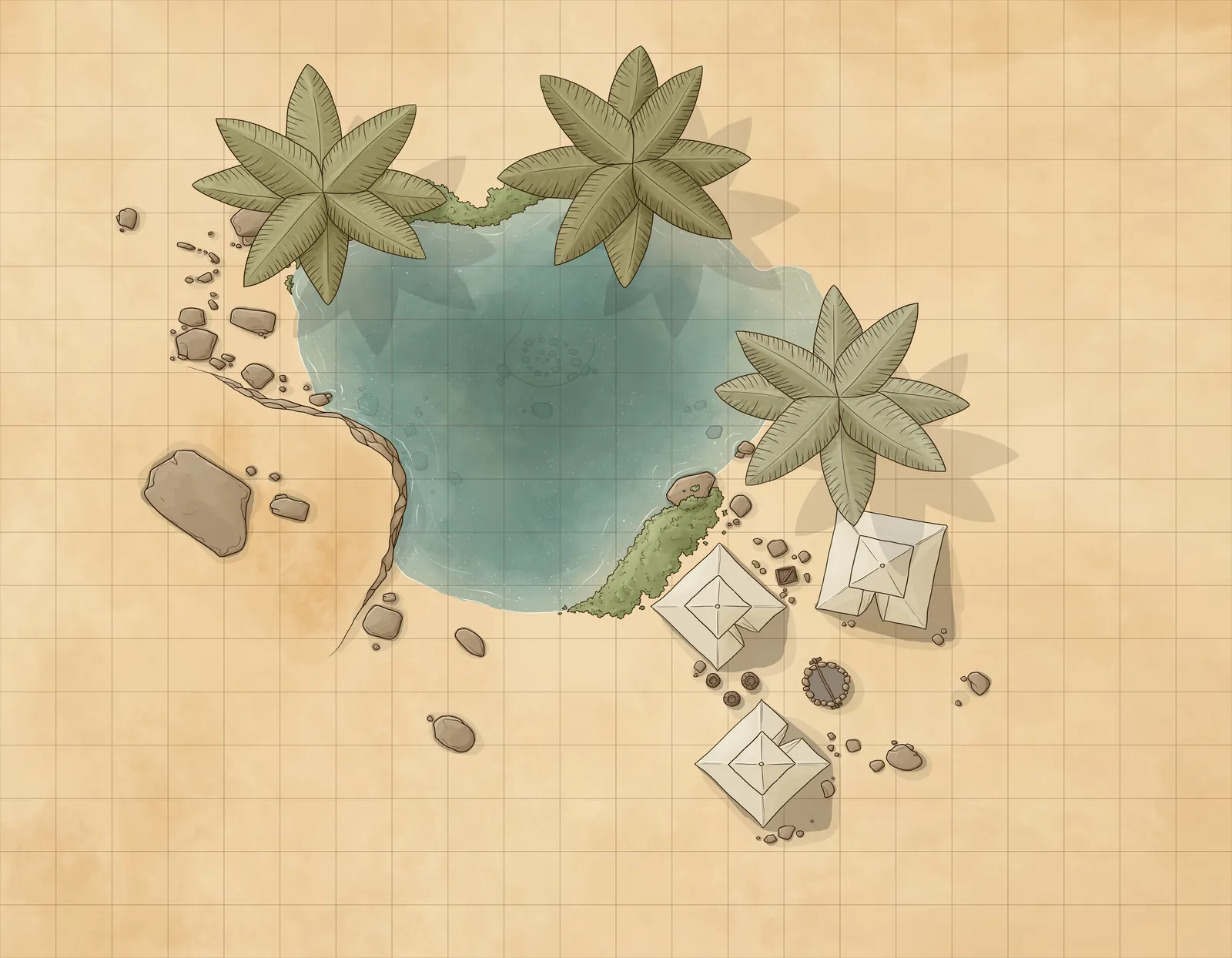 Ideal for Dungeon Masters running desert campaigns, travel encounters, or survival-focused adventures where a rare oasis becomes a focal point.