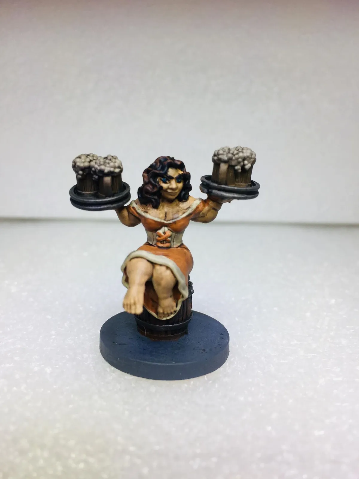 Dorella Breakheart works the taproom floor where coin flows as freely as ale. The dorella breakheart dwarf miniature captures Clan Oakentap’s most profitable server mid-shift. Notably, her smirk suggests she knows exactly which tables tip heavy.