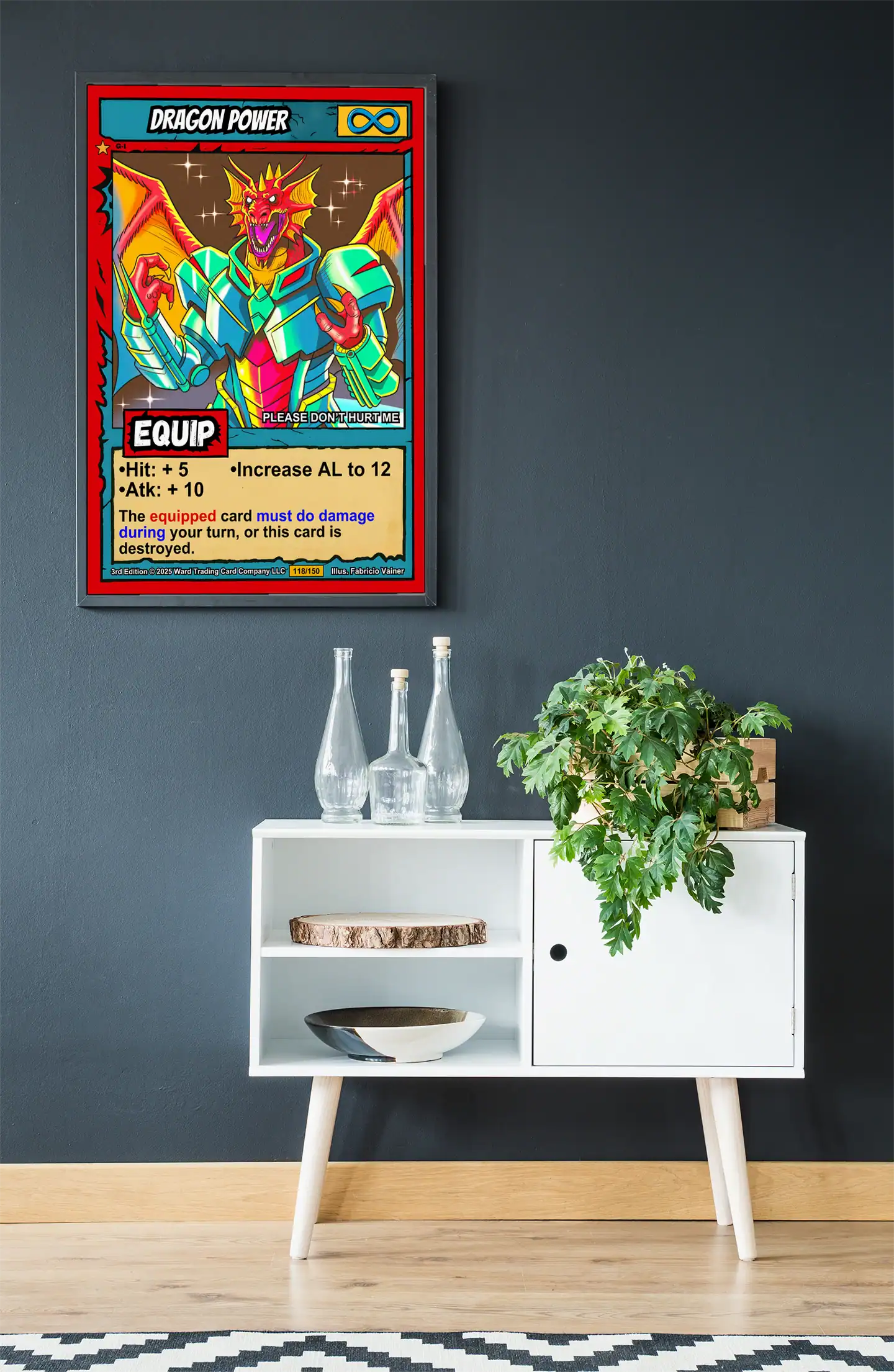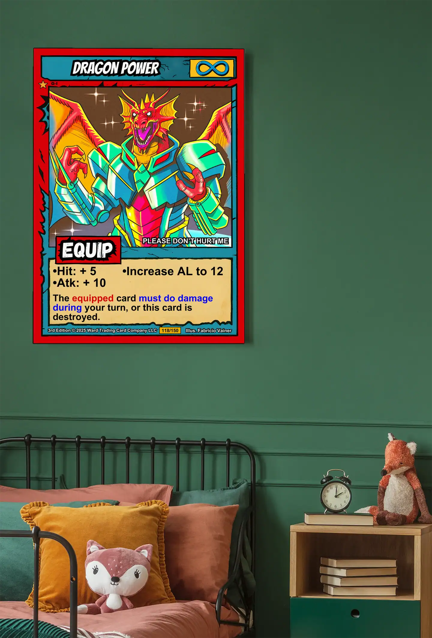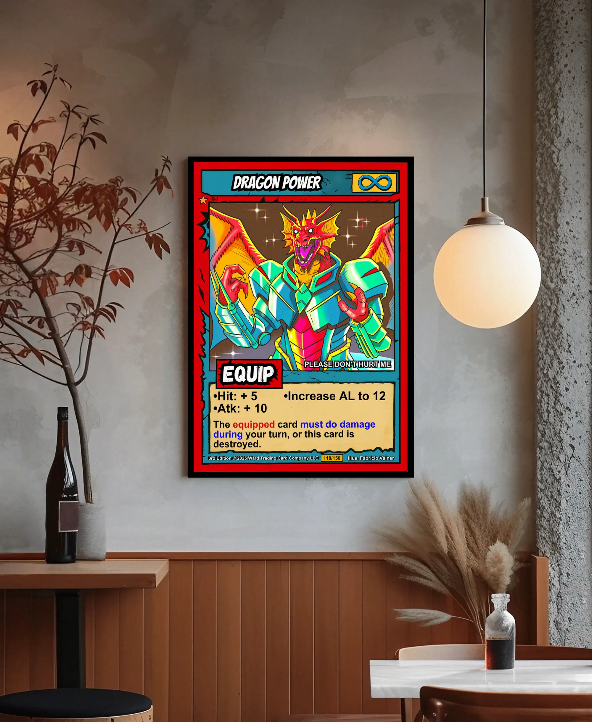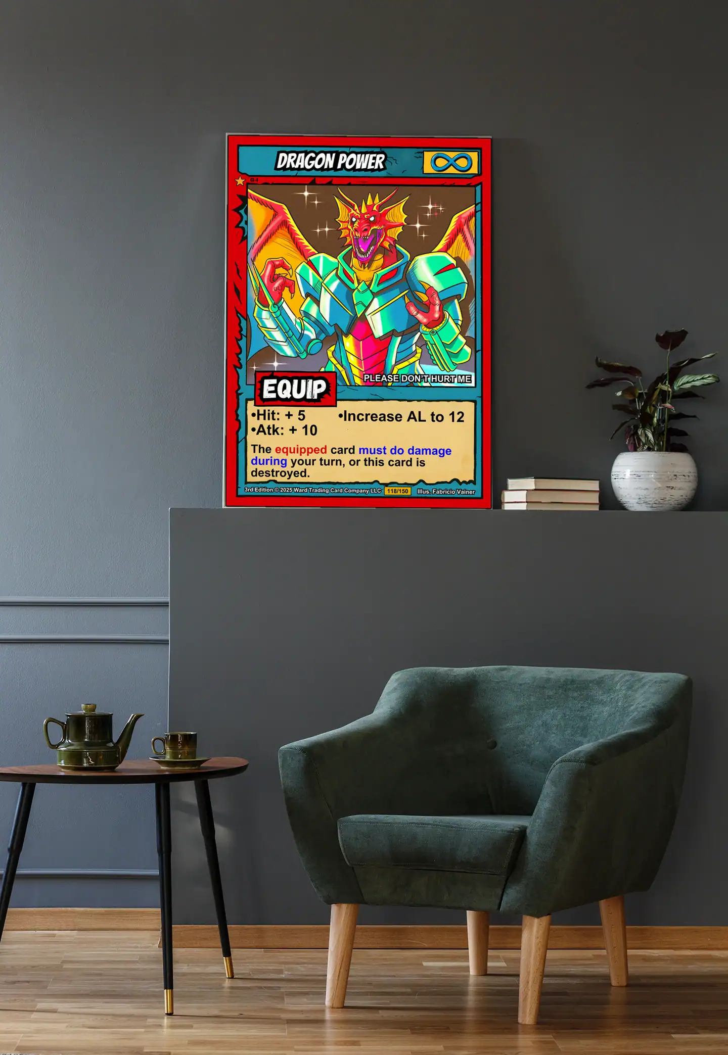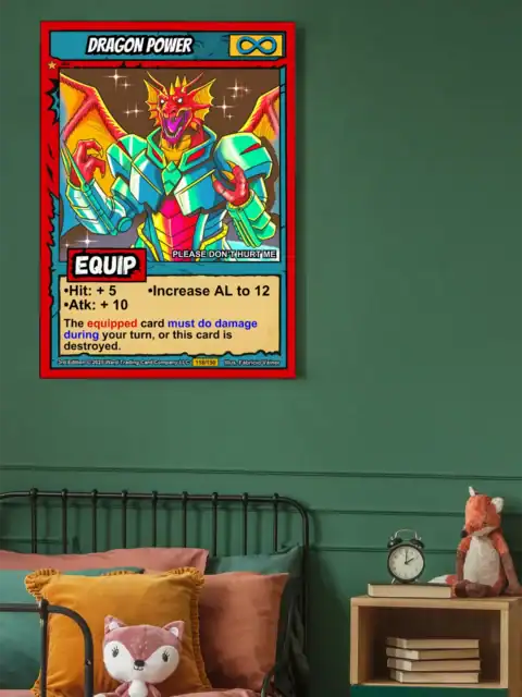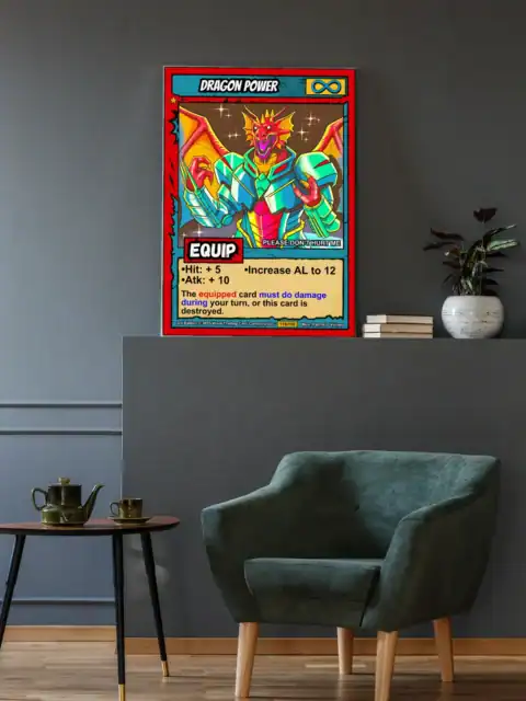 TCG collectors recognize authentic 1990s comic book styling when they see it. These buyers value original game art that bridges nostalgia with modern quality. Particularly, this dragon power trading card canvas print delivers Ward’s signature cel-shaded fantasy.