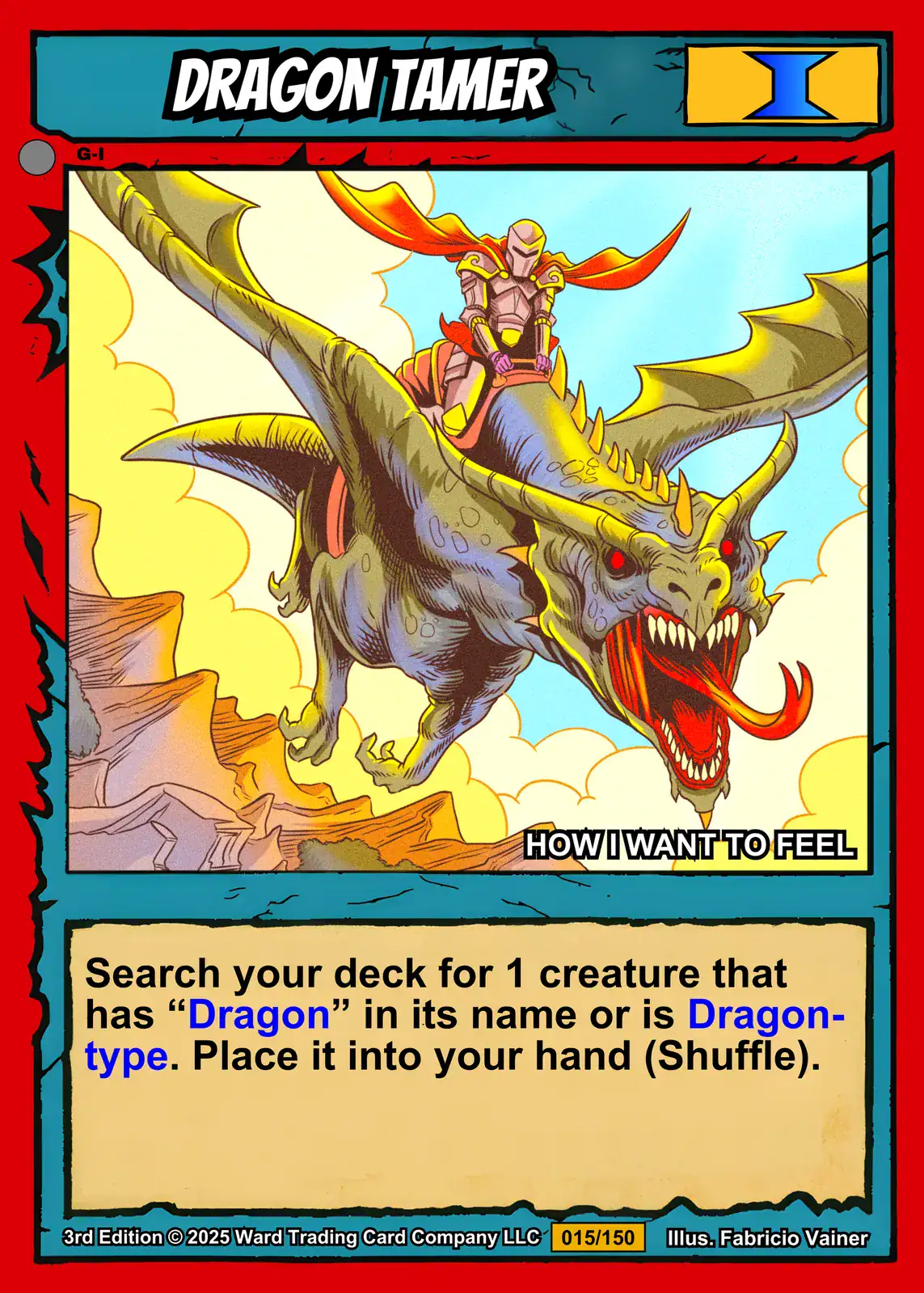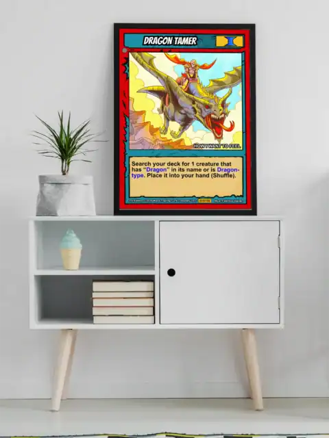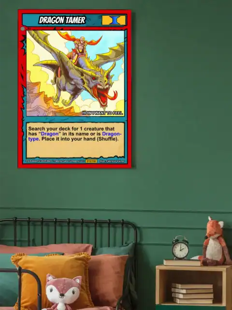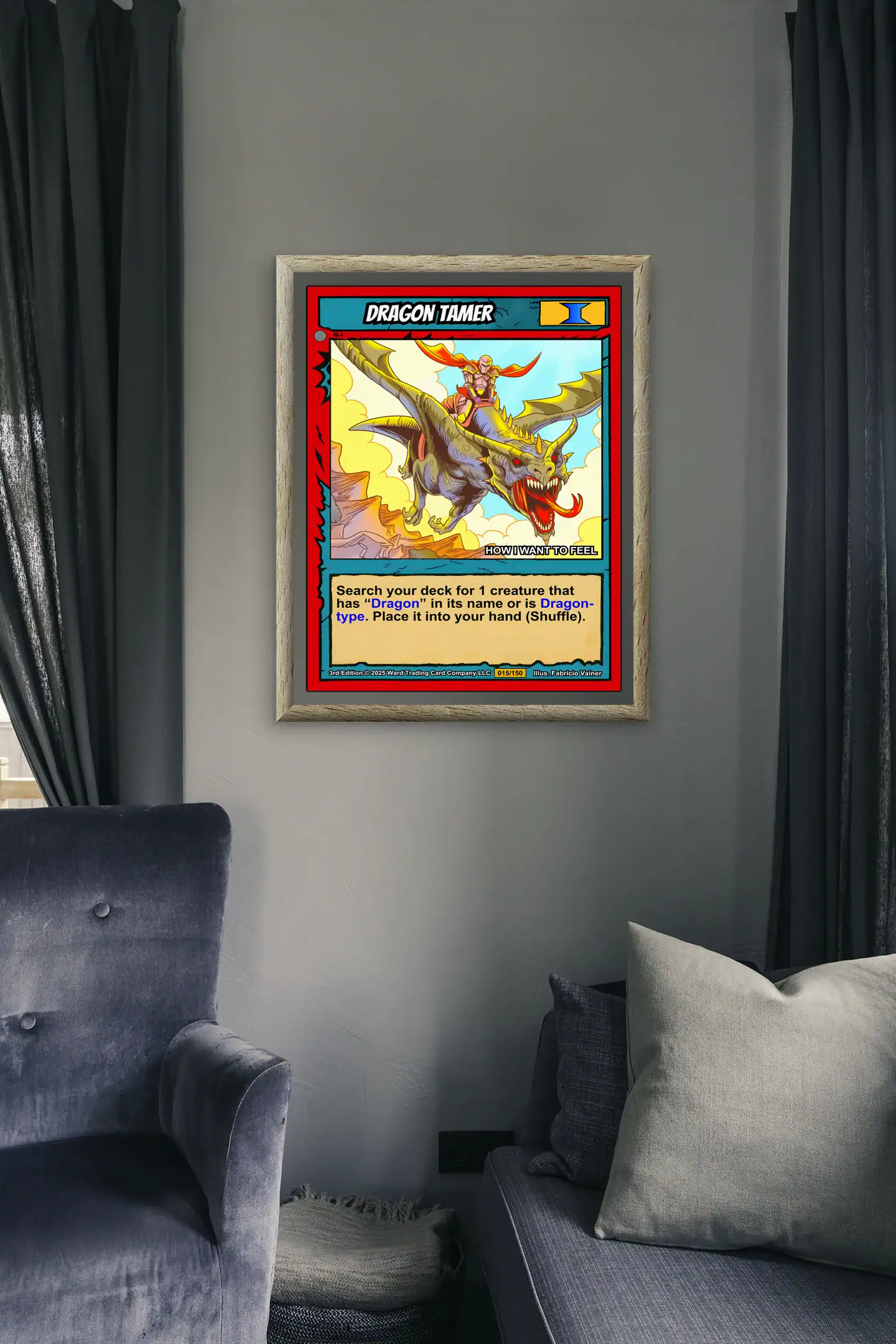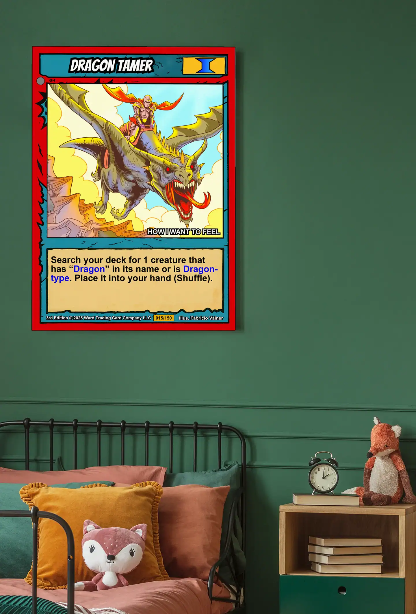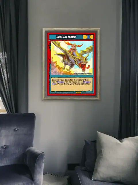 Owning this signals serious appreciation for both TCG artistry and fantasy illustration. Collectors who value Fabricio Vainer’s 90s-inspired style recognize quality craftsmanship. Moreover, this dragon tamer trading card canvas print commands respect in any collection.