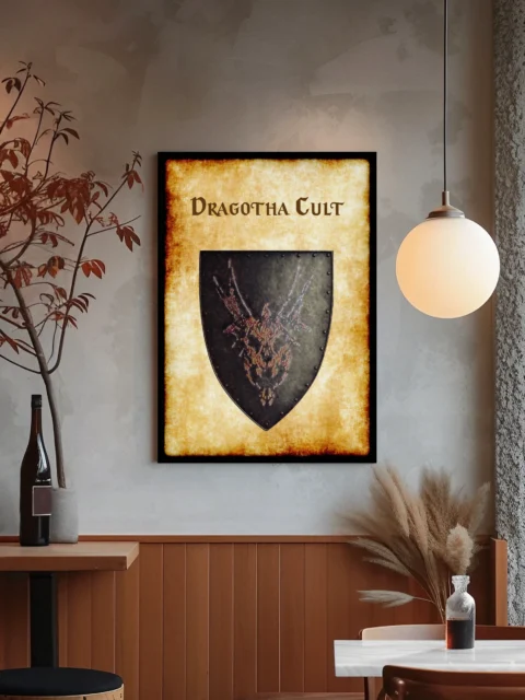Few heraldic devices command the dread respect of Dragotha’s skeletal sigil. Greyhawk players recognize the undead dragon’s terrible significance in campaign lore. Particularly, this dragotha cult aged Greyhawk heraldry canvas print marks serious collectors.