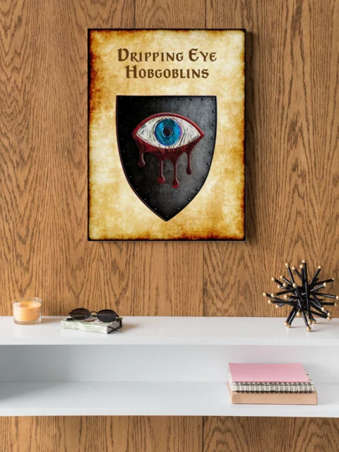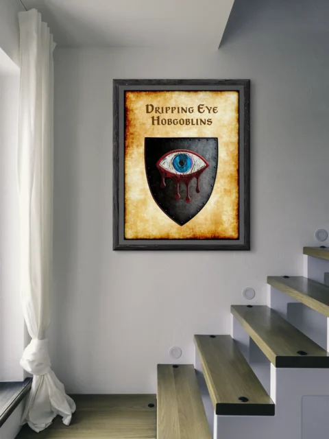 Owning this declares allegiance to Greyhawk’s darker military traditions. Collectors of OSR lore recognize the hobgoblin war machine’s significance. Moreover, this dripping eye hobgoblins Greyhawk heraldry canvas print commands respect.
