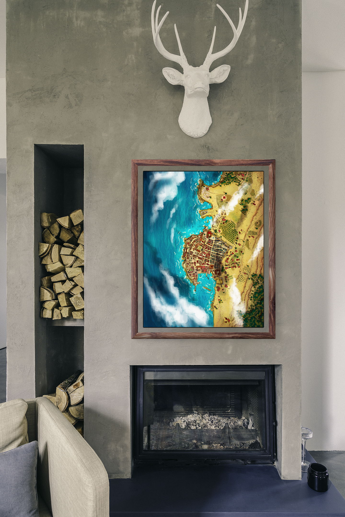 This archival-grade canvas print by Alyssa Faden serves both fantasy and historical gaming. Dungeon Masters can use it as the backdrop for epic campaigns, while historical gamers will appreciate its authentic medieval character. In addition, Dubrovnik’s fame as a filming location for Game of Thrones makes this piece a conversation starter and collector’s treasure.