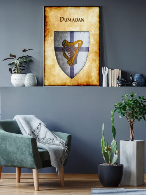 A home office where campaign prep happens gains authentic heraldic reference for Dumadan encounters. Furthermore, the weathered parchment aesthetic complements other medieval fantasy gaming materials perfectly.