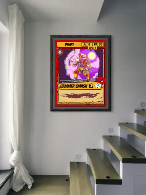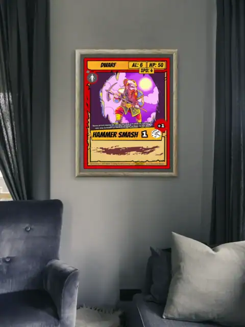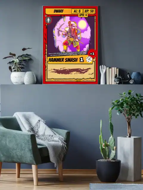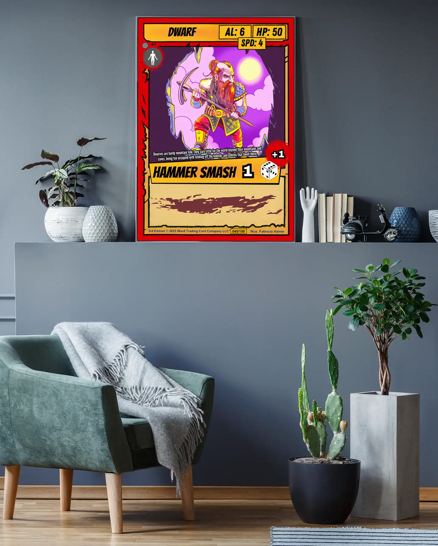Every dice roll needs a warrior watching over the table. TCG collectors and fantasy gamers recognize authentic character art when they see it. Moreover, this dwarf trading card canvas print brings Ward’s signature style into your game room.